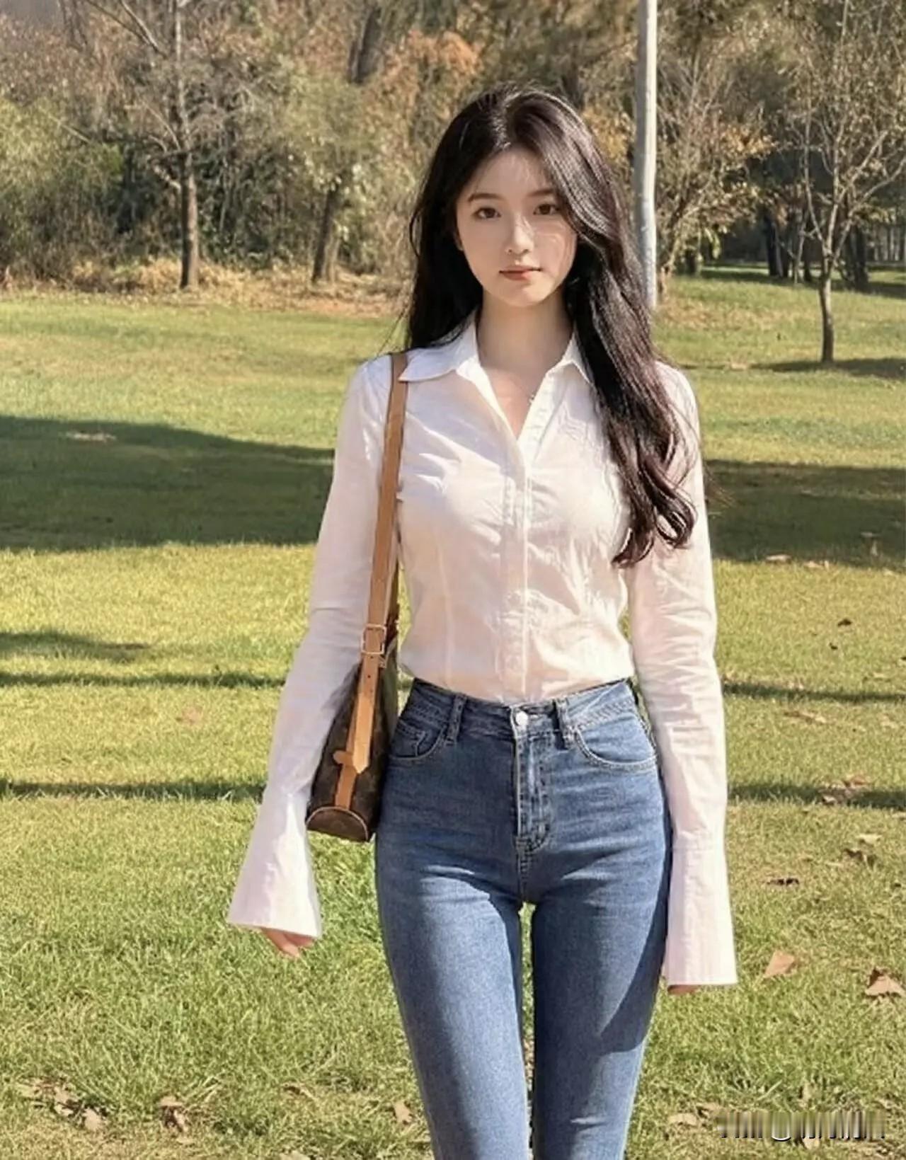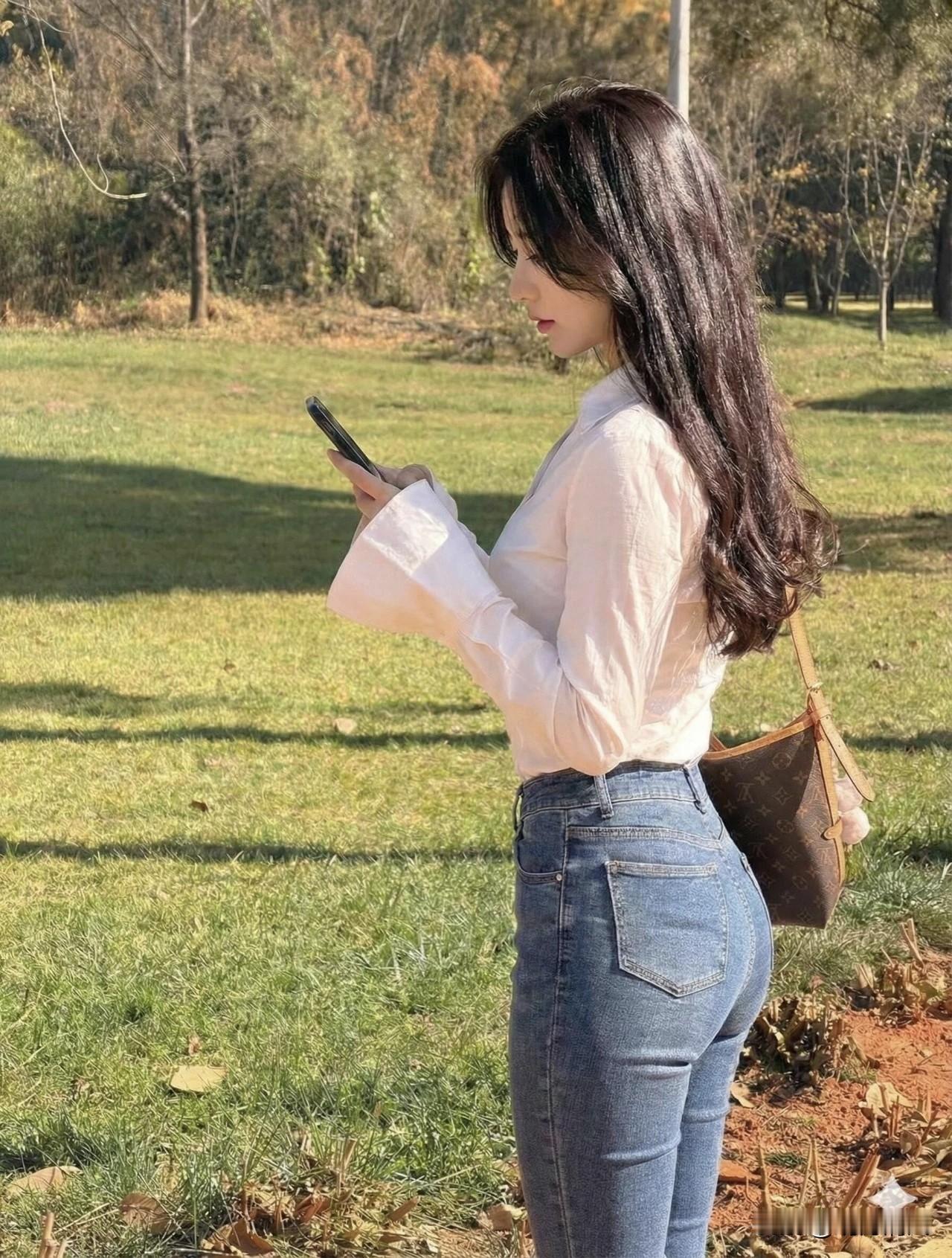 出去玩穿牛仔裤拍照,真的不用太费劲,越随意越好看。我超爱的一个动作是:背对镜头站着,抬起一只手搭在额前,假装遮阳,自然地看向远方。不用刻意摆,就真的像被风景吸引住那样。这个背影拍出来特别有感觉,牛仔裤的线条感也有了,整个画面就很松弛,还带着点故事感。 其实牛仔裤本身就好搭又上镜,几个小动作就能出片。比如侧身靠树插个兜,或者边走边看向旁边笑,都特别生活化。哪怕只是挎个包正对着镜头微笑,也足够大方漂亮。 真的,户外拍照穿牛仔裤是明智选择。你不用刻意摆拍,找找平时走路、看风景的状态,抓拍出来的瞬间反而最自然。试试看背对镜头抬手指个方向,或者干脆回头一笑,简单又好用。 牛仔裤拍照