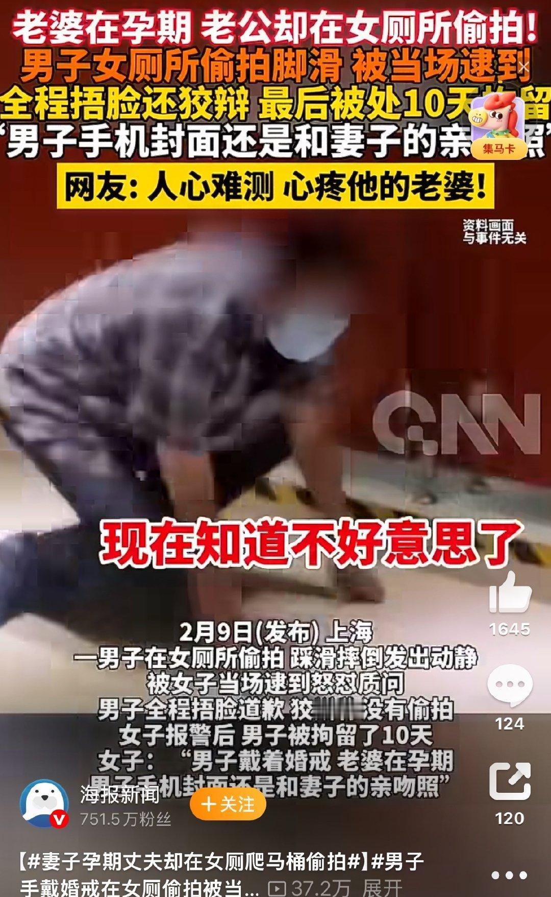 一个本该最体贴妻子的男人,却在妻子怀着孩子、最需要照顾的时候,做出了让人匪夷所思的事。 有个男的,妻子正怀着孕,按理说这时候丈夫应该忙前忙后,陪着产检,照顾饮食,晚上给揉揉腰、捏捏腿。怀孕多辛苦啊,身子重,睡不好,情绪也容易波动,这时候身边人的陪伴比什么都重要。可这位丈夫倒好,心思完全没放在家里。 那天,他鬼鬼祟祟地溜进了一处公共场所的女厕所。你说正常人谁干这种事?他倒好,不仅进去了,还干出了更离谱的——爬上了马桶。不是上厕所,是踩着马桶隔间,从上方探出头去偷拍。那姿势想想都滑稽又猥琐,一个大男人,像个贼一样蹲在马桶上,举着手机,眼睛盯着隔壁隔间,就等着有人进来。 你说他图啥呢?家里妻子怀着他的孩子,他不去想着怎么当个好爸爸、好丈夫,反而跑到外面干这种龌龊事。偷拍这种事,本身就是违法的,侵犯别人隐私,给人家造成多大的心理伤害啊。被拍的人要是发现了,得多恐惧、多恶心?好好的上个厕所,谁能想到头顶上藏着一双眼睛? 更讽刺的是时间点的错位。妻子那边可能正挺着大肚子, maybe 还在孕吐, maybe 正为即将到来的新生命紧张又期待。她可能还在想,孩子出生后家里该怎么布置,奶粉该买哪个牌子,丈夫会不会是个称职的爸爸。她绝对想不到,此刻那个本该陪她散步、给她削水果的男人,正趴在公共厕所的马桶上,做着这种下三滥的勾当。 这种事一曝光,周围的人都炸锅了。大家议论的不仅是这个男人的变态行为,更是这种强烈的反差。孕期本该是夫妻感情最紧密的时候,是两个人一起迎接新生命的特殊阶段。很多准爸爸在这个阶段会变得特别温柔,学着做饭,研究育儿知识,甚至半夜起来给妻子按摩抽筋的腿。可这位呢?他把精力用在了偷窥陌生人身上。 有人说,这种偷拍成瘾的人,心理早就扭曲了,跟家里老婆怎么样没关系。但话说回来,家里有个需要照顾的孕妇,多少也该收收心吧?哪怕装,也得装出个负责任的样子来。可他连装都不装,或者说,那种偷拍的冲动已经压过了对家庭的责任感。 被抓的时候,这男的估计也懵了。从马桶上下来,手机里的证据确凿,想抵赖都没门。警察一来,事儿就大了。猥亵、偷拍,这都是要拘留、要留案底的。以后孩子出生了,问起爸爸呢?妈妈该怎么回答?说爸爸因为爬女厕所偷拍被抓了?这让孩子以后怎么抬头做人? 这种人就是自私到了极点。只图自己那点阴暗的快感,完全不顾及家人的感受,更不顾及受害者的权益。妻子怀着孕,身体和心理都脆弱,要是知道了这件事,得受多大的打击?万一动了胎气,后果不堪设想。他倒好,只顾着自己那点龌龊心思,把一家人的未来都赌进去了。 这种事也给所有人提了个醒。看一个人不能只看表面,尤其是那些准爸爸们,别光会说漂亮话,关键时刻得看行动。嘴里说着"老婆辛苦了",转头却干这种见不得人的事,这种人比那些明着坏的人更可怕。婚姻里最重要的是信任和尊重,连最基本的底线都守不住,还谈什么养家、谈什么当父亲? 现在这男的肯定后悔了,但后悔也晚了。法律不会因为他妻子怀孕就轻饶他,社会舆论更不会放过这种道貌岸然的伪君子。只是可怜了那个未出生的孩子,还没来到世上,父亲就已经蒙上了一层阴影。也可怜那个正在孕期中的妻子,本该被呵护的日子,却要面对这样不堪的真相。对妻子多些关怀 丈夫奇怪行为 来源:海报新闻