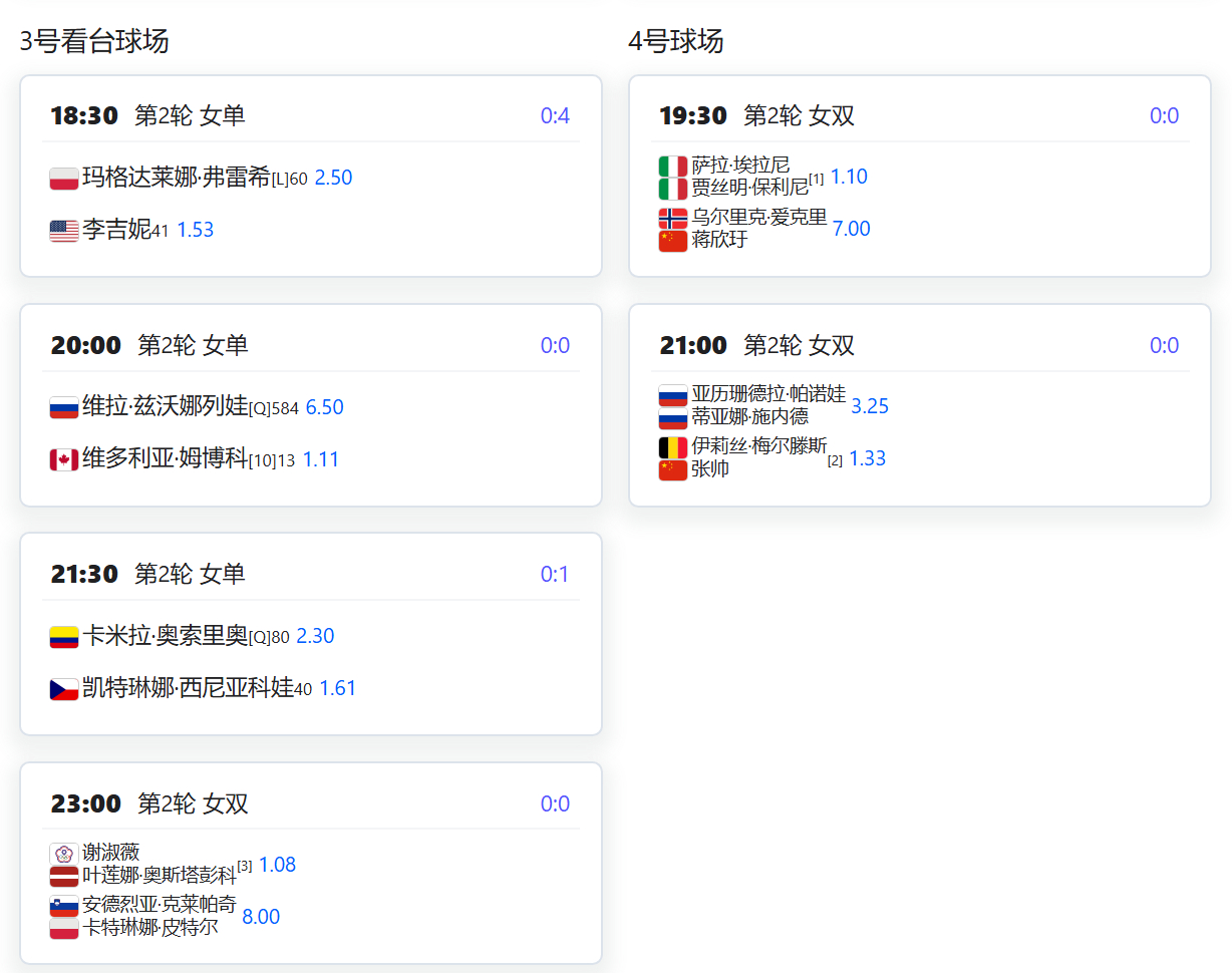 网球talking大会体育大赏 多哈今日赛程安排,王欣瑜挑战莱巴金娜,郑钦文再战公园姐。双打蒋欣玗组合、张帅组合出战。