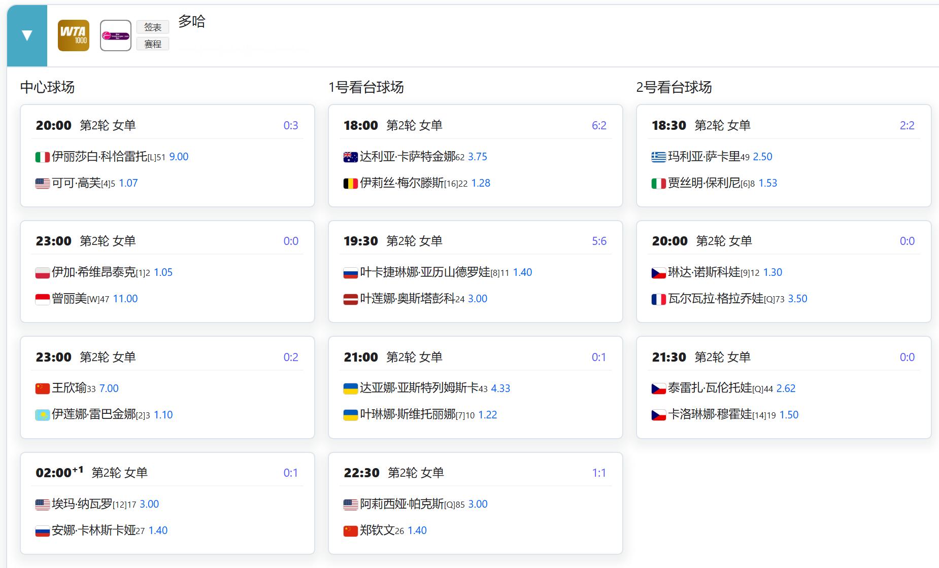 网球talking大会体育大赏多哈今日赛程安排,王欣瑜挑战莱巴金娜,郑钦文再战
