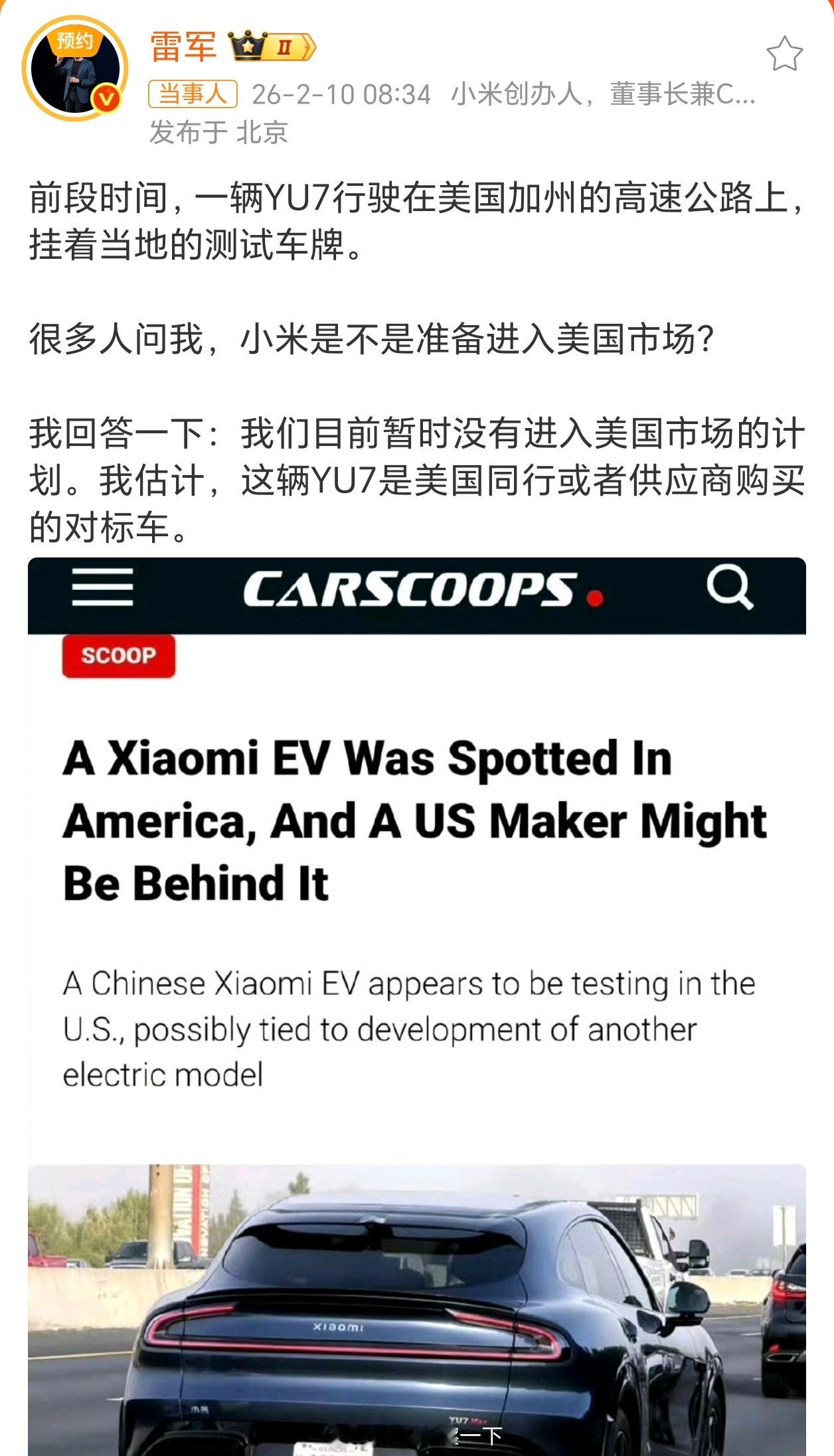早鸭!小米手机都没能在美国自由开麦,更别说小米汽车暂无计划进军美国了