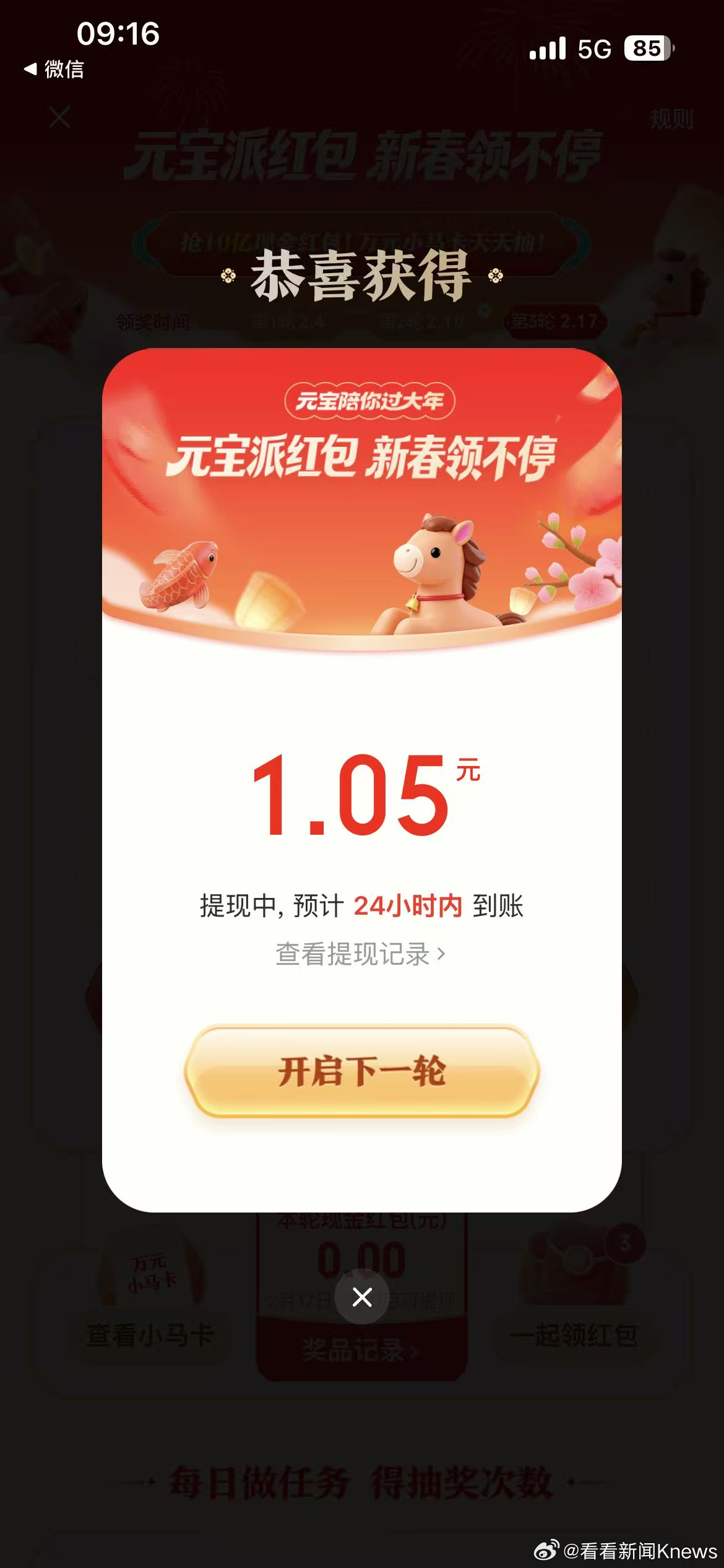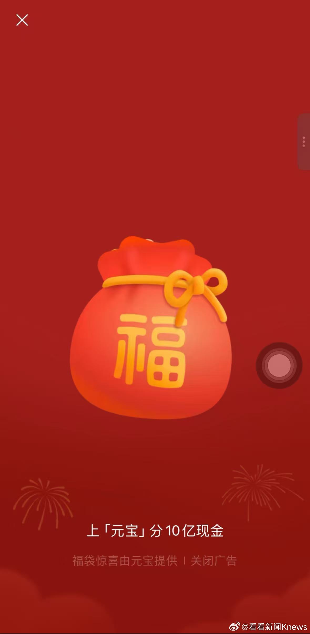 【#元宝发红包有新玩法了#】2月10日凌晨,发文表示:大家在微信里聊天试试发“元宝”两个字。记者测试后发现,微信发送“元宝”有福袋掉落,点击跳转“元宝”领取红包,红包将直接存入微信零钱。