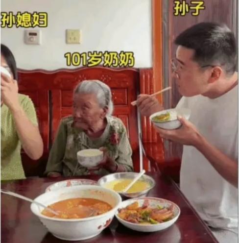 “笑喷了!”,男子家里有位101岁的奶奶,为了逗一下奶奶,他和妻子商量着吃饭的时候定一个规则,谁吃饭最慢谁洗碗,本以为最慢的肯定是奶奶,就想看看奶奶会有什么反应,没想到奶奶的举动让他惊讶极了。 一开始吃饭,夫妻俩还故意放慢速度,偷偷观察奶奶。本以为百岁老人动作迟缓,肯定是最后一名,等着看奶奶可爱耍赖的样子。可谁知道,奶奶端着碗稳稳当当,一口接一口,吃得又稳又快,眼神清亮,手脚麻利,完全不像一位已经101岁的老人。 等男子和妻子刚吃到一半,奶奶已经稳稳当当放下碗筷,擦了擦嘴,笑眯眯地看着他俩,那眼神仿佛在说:“就这?你们还想赢我?” 夫妻俩当场愣住,随即笑到直不起腰。本想逗逗老人,结果反被老人“秒杀”,输得心服口服。最后只能乖乖收拾碗筷,而奶奶坐在一旁,笑得像个赢了比赛的孩子,满脸都是藏不住的可爱与骄傲。 网友看完纷纷表示:这哪是百岁奶奶,分明是隐藏的“干饭王者”! 其实最让人暖心的,不是输赢,而是百岁高龄依旧精神矍铄、心态年轻。家人愿意陪着老人玩闹,老人愿意配合家人撒娇,这才是最珍贵的天伦之乐。 最好的长寿,从来不是吃得多好、住得多贵,而是有人陪你闹、有人把你当宝。这样可爱又健康的奶奶,谁看了不羡慕?#101岁的奶奶##家庭暖心故事