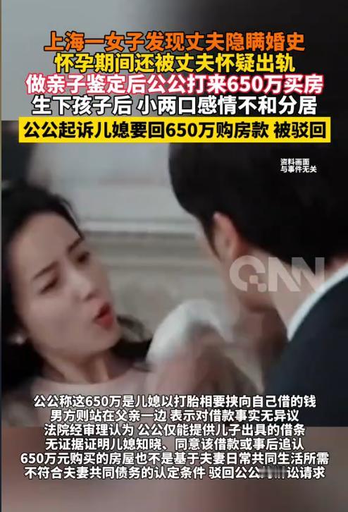 上海,女子怀孕期间,公公豪掷650万购买了套学区房,并登记在女子名下。可3个月后,女子竟和丈夫分居了,起因是丈夫怀疑女子婚内出轨,怀的孩子也不是他的。女子为了自证清白去做了亲子鉴定后起诉离婚,但未得到支持。公公担心女子跑了,于是将儿子和女子告上法院,称这650万元是借款,还出具了儿子签字的借条,甚至表示买房是被女子逼迫的。女子则坚决表示,这房子是对丈夫的过错的补偿,属于自愿赠与。法院的判决亮了!(来源:青岛新闻网) 据悉,2023年9月份,女子谢某和丈夫唐某突然闹起了离婚,那时候二人的女儿才出世没多久。 唐某的父亲老唐得知此事后,立即劝说二人不要离婚,但无论怎么劝都没用。在2024年5月份,谢某还是提起了离婚诉讼,但法院综合考虑后,未同意二人离婚。 见谢某是动真格的想要离婚,老唐也彻底坐不住了,他拿着一份借条,向法院提起了诉讼,将谢某和唐某一并告上法院,要求二人共同偿还650万元的借款。 原来,在2023年6月份,谢某生下女儿之前,老唐就拿出650万元购买了一套学区房,且登记在了谢某的名下。 老唐认为这650万元是借给谢某和唐某的,既然二人要离婚了,那还是先还了钱再离婚。 为了证明借款真实存在,老唐提交了一份借条,上面还有唐某的签字。而在法庭上,唐某也承认了这650万元的确是借款。 但是谢某不认这是借款,她称这是老唐为了感谢她生下孙女的钱,属于赠与款。 可老唐反驳称,这650万元并非真心赠与,而是谢某在怀孕期间用人流来逼迫老唐买了房子。 谢某对此进行了否认,她表示自己并没有逼迫老唐买房,当初打算把孩子拿掉,是因为谢某怀疑她婚内出轨,且怀疑孩子不是他的。 后来为了自证清白去做了亲子鉴定,确认孩子就是唐某的,所以老唐才买了房。 谢某认为自己与唐某的收入都不低,有能力自行买房,而且老唐已经花了1000多万元购买了婚房,孩子还小,完全没有必要这么早买学区房。 那法院会怎么判? 老唐作为原告方,主张这650万元是借款,那就要看双方之间是否存在借款的意思表示。 根据老唐和谢某的聊天记录等证据,并未体现出有借贷的意思表示。按照谢某所说,她对借款一事并不知情,更不知道借条的存在。 也就是说,老唐出具了有唐某签字的借条,那就代表他与唐某之间存在借贷关系。 虽然唐某与谢某仍是夫妻,但唐某个人的债务并不代表就是夫妻共同债务。 《民法典》第1064条规定,夫妻双方共同签名或者夫妻一方事后追认等共同意思表示所负的债务,以及夫妻一方在婚姻关系存续期间以个人名义为家庭日常生活需要所负的债务,属于夫妻共同债务。 由此可见,认定夫妻共同债务的要件有以下三点: 第一,夫妻双方共同签字确认; 第二,夫妻一方在得知借款事实后追认; 第三,夫妻一方虽以个人名义借款,但借款是为了家庭生活的。 但本案中,谢某没有在借条上签字,事后也没有追认,且按照谢某所说,她有能力买房,并不需要向老唐借钱买房。 如果老唐能证明买完学区房后,唐某和谢某在学区房一起居住了,但是老唐并未提交相应的证据。 鉴于此,法院认为老唐主张这650万元是借款,但无法证明这是唐某与谢某的夫妻共同债务。 既然唐某认可了这份借条,老唐应当去找唐某索要650万元。 最终,法院判决驳回了老唐的全部诉请。 最后,有网友表示,好算计,生个了女儿,拿了套650万的学区房,那可是徐汇区啊,赚大了。 还有网友表示,女的才是受害者,男的隐瞒婚史还怀疑女的出轨,这650万元就当做补偿了。 对此,您怎么看?欢迎留言交流。