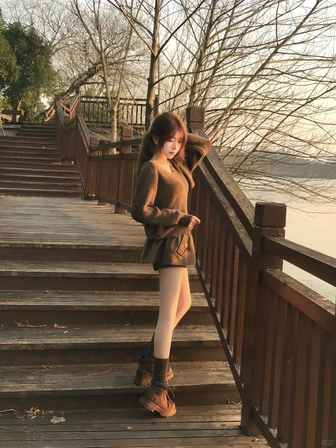 阳光正好,微风不燥,站在台阶上眺望远方,心情也跟着明朗起来。酒红色上衣搭配黑色牛