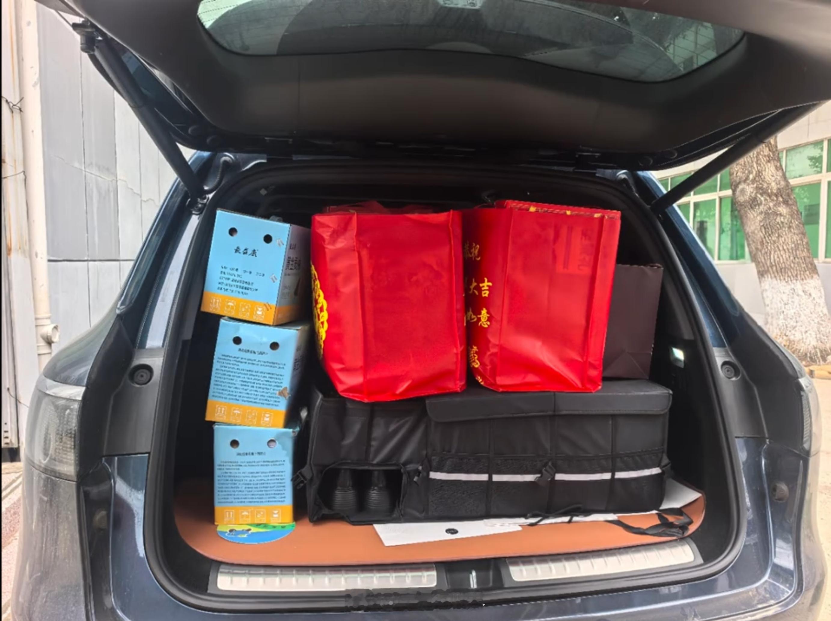 最让我得意的还是它的肚量。后备箱里,除了我俩的行李,还给两边老人的年礼、孩子的玩具、给姐姐带的盆栽……零零总总,竟然全都稳妥地收进了后备箱。全都安排得明明白白。这种“想带的都能带上”的从容,可能就是给家人心意最实在的表达吧。