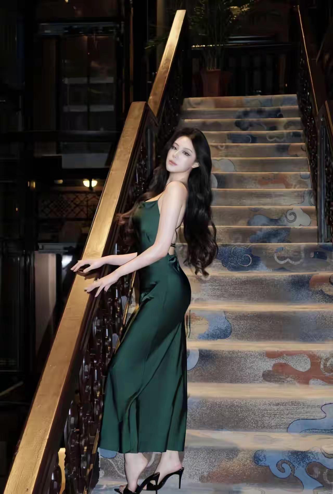 绿衣美人上楼梯,步步生莲影。