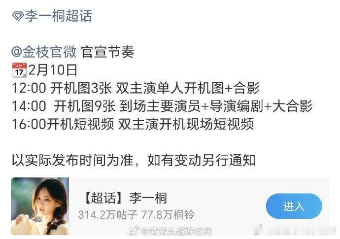 李一桐对接回应节奏提前公开李一桐对接说因不可抗力因素金枝 热度持续攀升!李一桐对接回应节奏提前公开,对接方说明因不可抗力调整,期待《金枝》顺利播出。