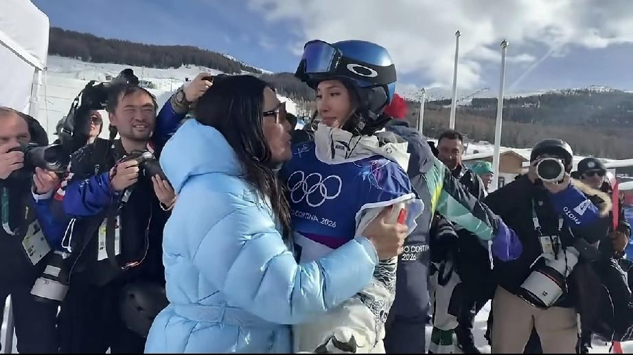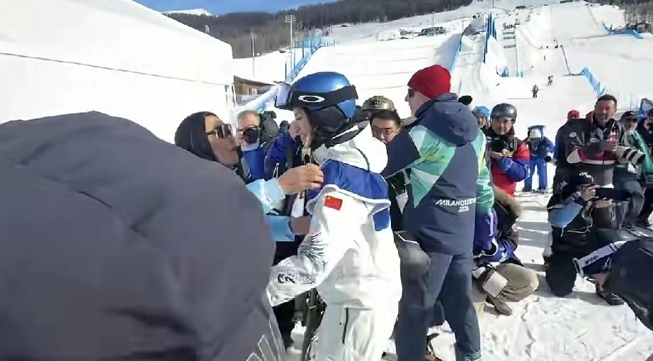 谷爱凌母亲62岁竟然做了美甲去看谷爱凌的比赛,比谷爱凌还紧张,血压随时都会升高! 2月9日,青蛙公主谷爱凌在2026年米兰冬奥会当中获得一枚银牌,具体是女子自由式滑雪坡面障碍技巧决赛,谷爱凌取得了86.58分的成绩,为中国的冬奥会代表团夺下了本届米兰冬奥会的首个银牌。 谷爱凌的母亲谷燕就在谷爱凌比赛的场地下全程站着观看,她62岁了,戴着墨镜,皮肤比较黑,不知道晒黑了还是怎么回事。 谷燕还做了美甲,但比谁都紧张,感觉她这么大年龄了,随时可能血压升高,挺不容易的。 谷爱凌第一跳成绩不好,在第二跳时谷燕的神经是绷得很紧的,甚至暗自咬嘴唇了,生怕女儿再次失误。 还好后面谷爱凌扭转了乾坤,最终获得银牌。 当谷爱凌比赛完一下场,首先就是找母亲谷燕过去深情拥抱,能看出来,母女二人的关系是非常好的,谷燕就是谷爱凌的坚强后盾,也是她的生活助理,随时跟着她。 谷燕毕业于北京大学,后面到美国的斯坦福大学读书,谷爱凌是在美国旧金山出生的,三岁时就被谷燕送去学滑雪了。 如今谷燕在现场观看谷爱凌的米兰冬奥会比赛,忽而紧张,忽而兴奋,说明她这一路走来并不容易,因为经常神经紧绷,血压随时升高!