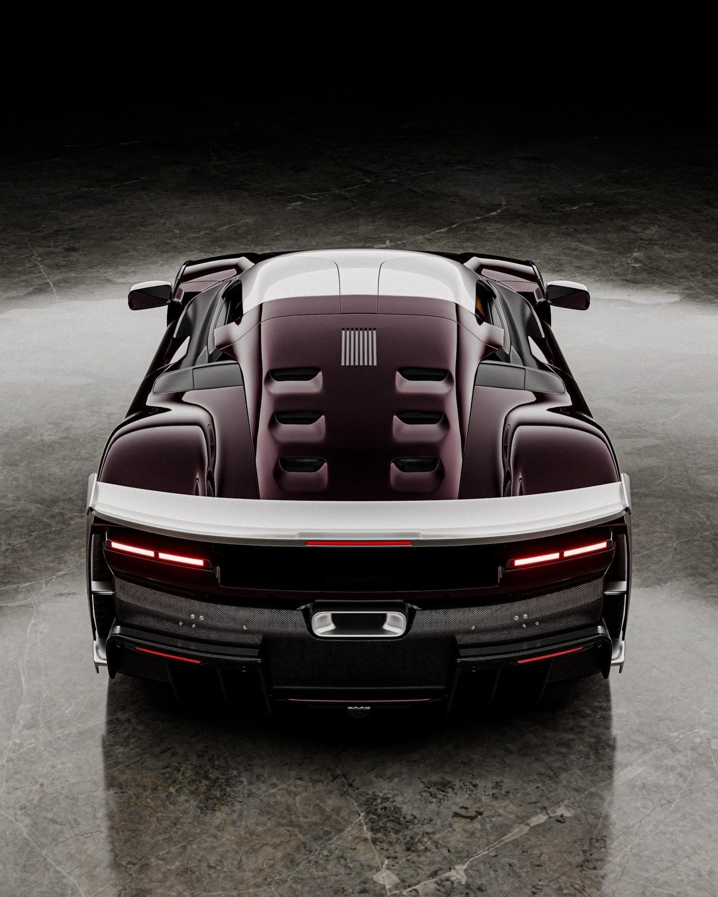 前后保险杠的部分区域被漆成了Rosso Vinaccia和银色,与全黑的Opaco碳纤维外观相得益彰。