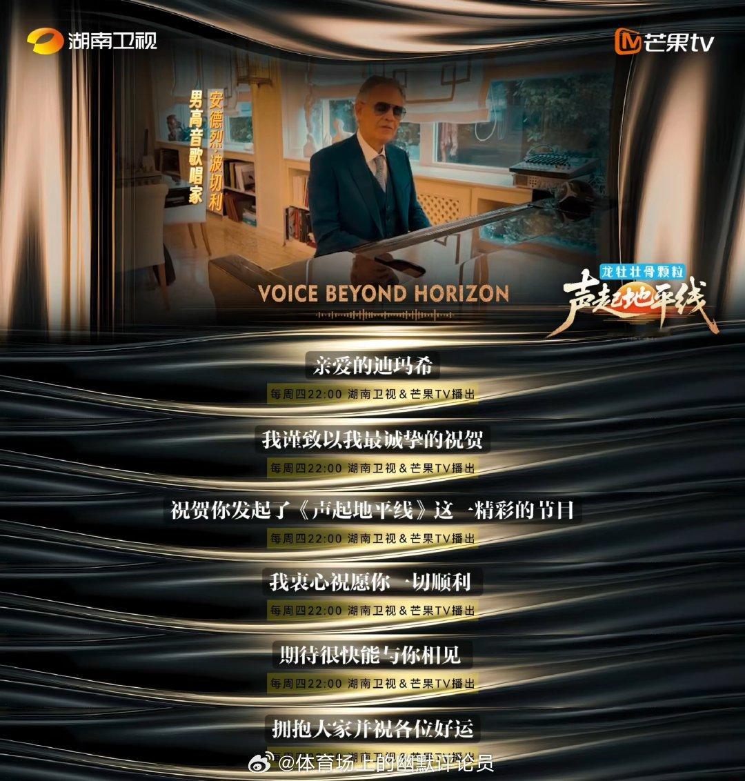 芒果音综和冬奥会梦幻联动了 起猛了,看到米兰冬奥会的表演嘉宾给芒果音综打call了!在开幕式上演唱《今夜无人入睡》的男高音歌唱家安德烈·波切利,在声起地平线 开播时,恭喜发起了这一精彩的节目,并祝愿他一切顺利。芒果这次直接和冬奥会梦幻联动了,这排面舍我其谁! (