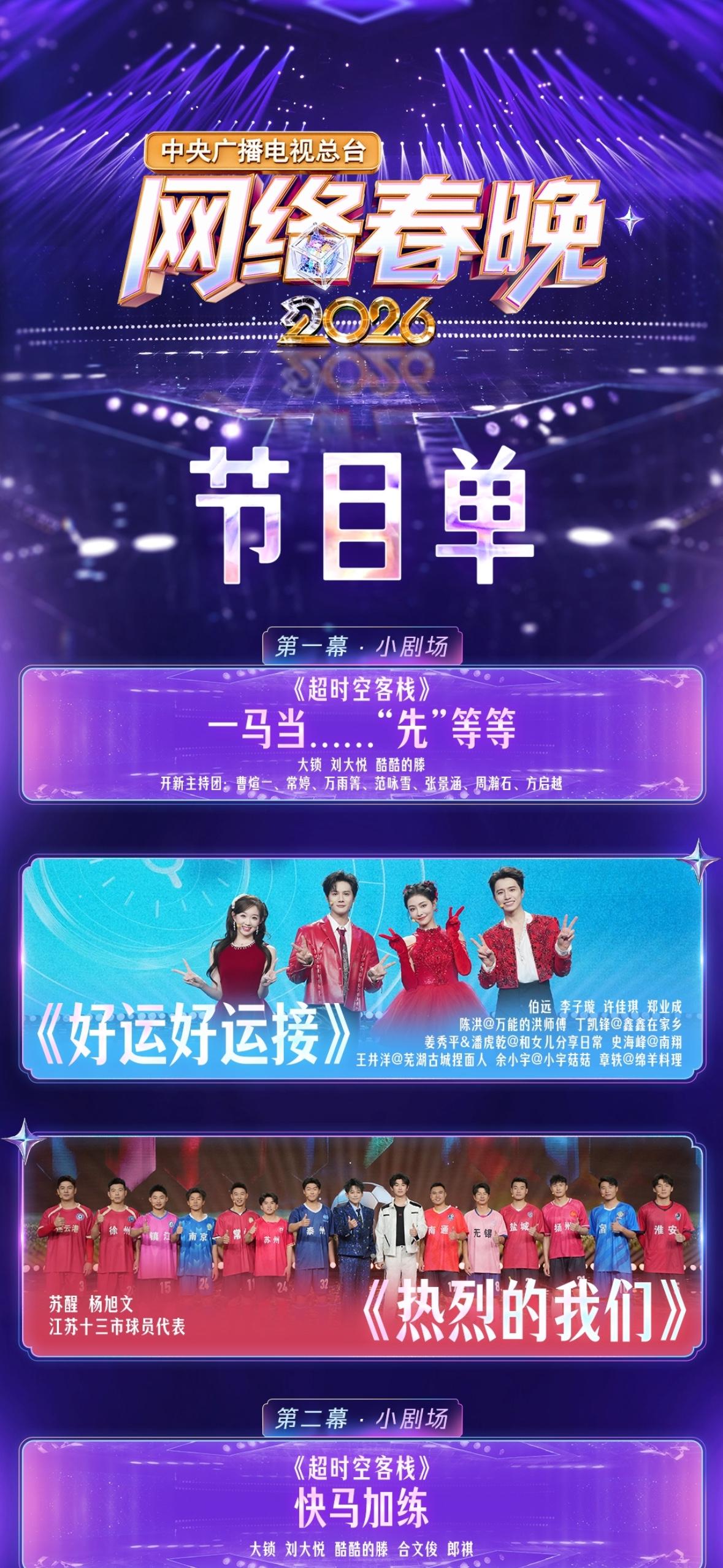2026年CCTV网络春晚节目单重磅揭晓!“超时空客栈”温情启幕,诚邀你共赴一场崭新的开新之约。