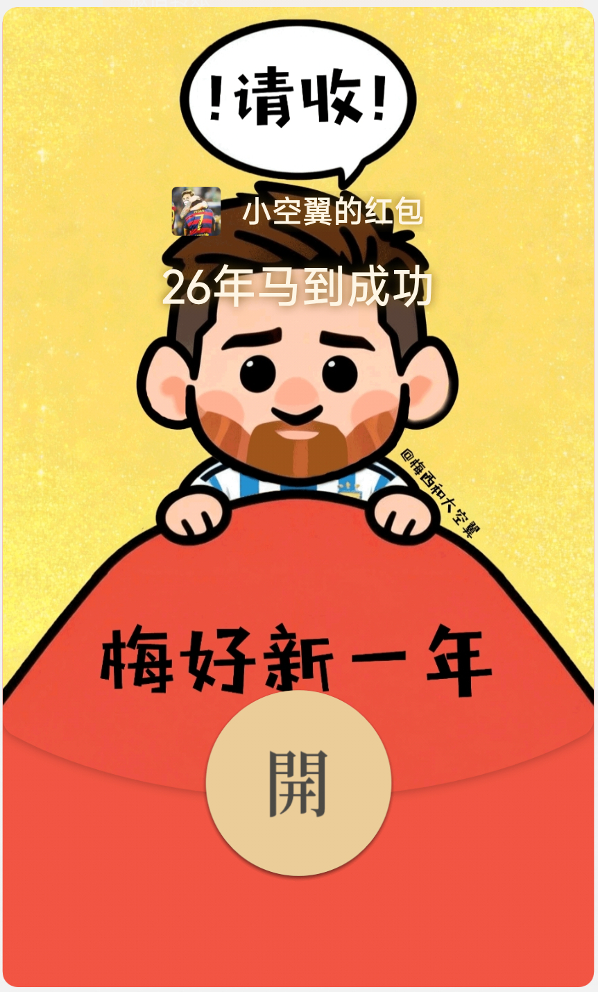 做了三张梅西新年红包封面,图1-3自取~保存图片后在微信红包页面点击【制作我的封面】就可以自制了~希望我们今年的共同愿望再次实现!!【转评抽明信片】和往年一样,一年一度给大家寄厦门的明信片吧~留下你的马年愿望,评论和转发都可以,抽26位粉丝寄明信片!要记得留能收明信片的地址哦另外,需要06年阿根廷19号梅西复刻球衣的朋友,滴滴我