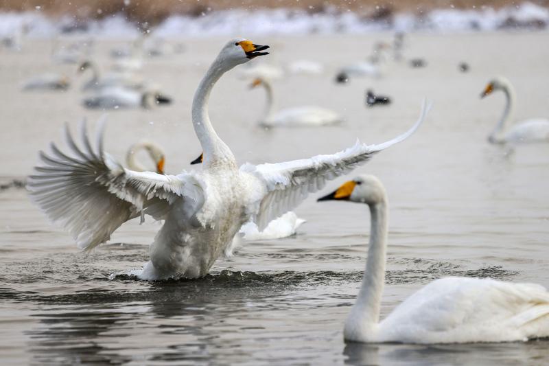 原来真正的“天鹅舞”这么震撼!近日河南郑州一网友拍到天鹅跳“天鹅舞”,这可不是艺术编排,而是天鹅本能互动,常见于春季繁殖季。 成对天鹅在水面同步低头、昂首,脖颈弯成心形互相触碰,还会并肩踩水滑行、振翅踏浪,甚至同步潜水、出水,姿态优美又对称。这“共舞”是它们巩固配偶关系、求偶配对的爱情仪式。 舞台上舞者演绎的“天鹅舞”艺术水准高,情感表达足。而综艺里的“天鹅舞”又有幽默荒诞感。原来艺术灵感真源于自然,不得不感叹大自然的神奇!