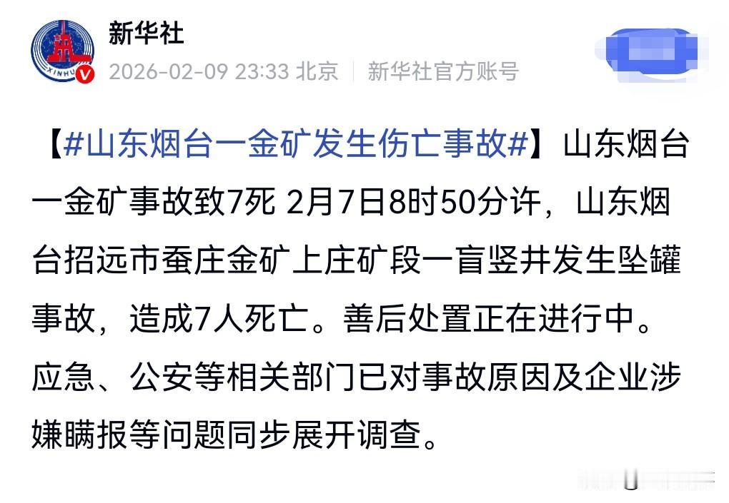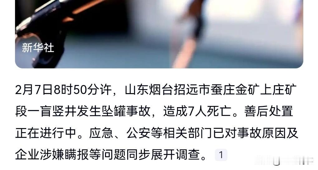这真是太悲剧了,又发生矿难。 如果出了矿难,不选择第一时间上报,而是选择瞒报,那简直就是在作死,必将受到惩罚。 2月7日8:50许,山东招远一金矿发生事故致7死,给家庭带来沉重痛苦。 一定要好好查查里面有哪些违规的问题。