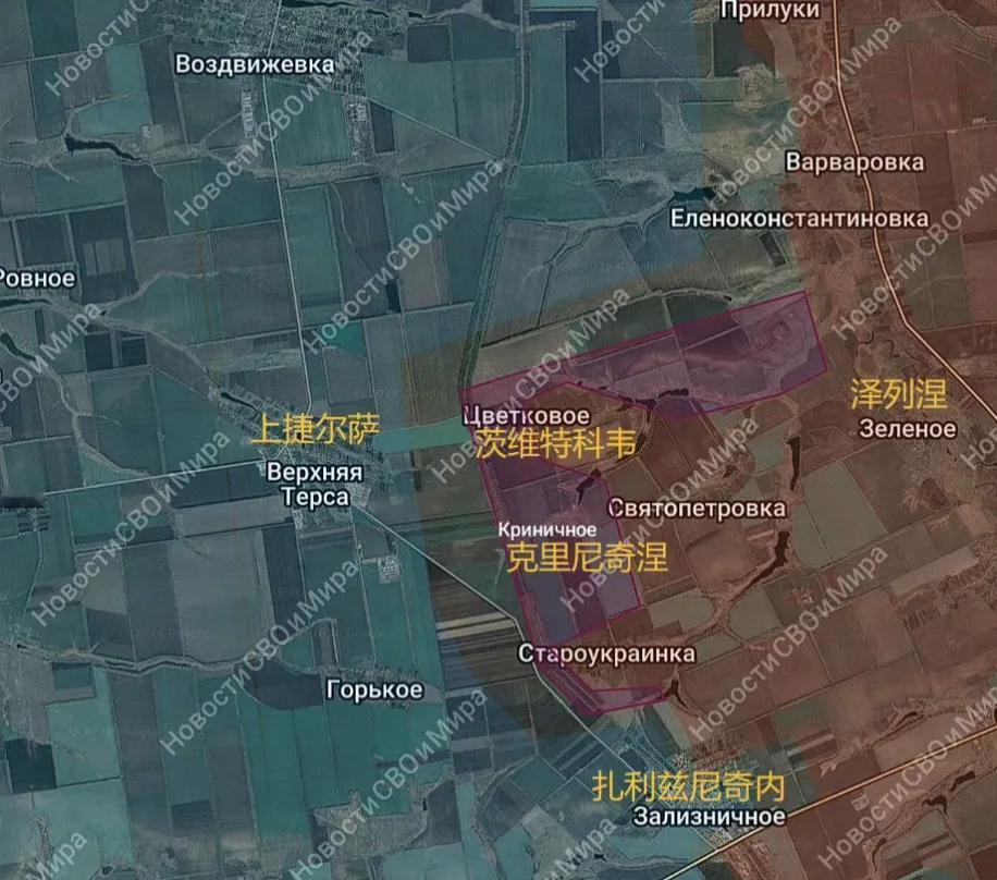 俄军东部集群在扎波罗热州古利艾波列方向继续向西推进,占领了茨韦特科沃(茨韦特科韦)和克里尼奇涅,马上就到上捷尔萨的郊区了。 上捷尔萨虽然在所辖面积方面比不上古利艾波列,但也是乌军在扎波罗热州的一个比较重要的防御枢纽,如果丢了,那后续的防御将更加艰难。然而,乌军在古利艾波列都挡不住俄军东部集群的进攻,在上捷尔萨同样挡不住,无非是坚持多长时间的问题。#俄乌冲突#