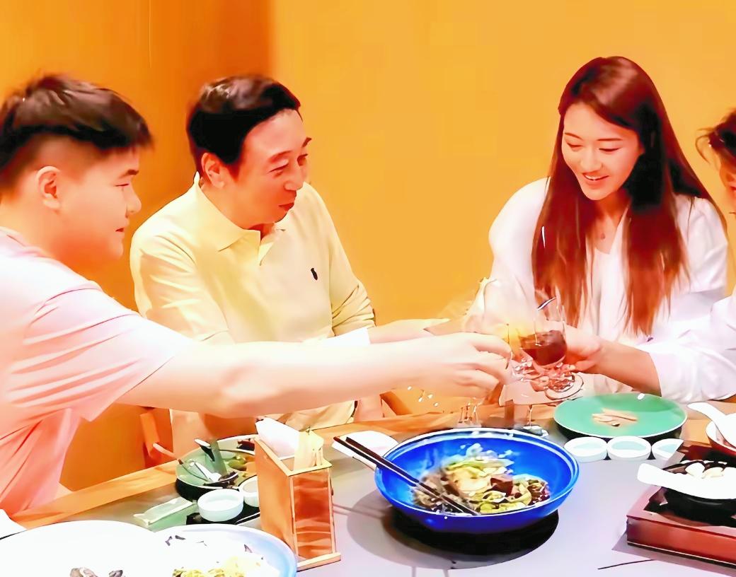 冯巩受邀到闫学晶家做客,席间与闫学晶的儿子、儿媳妇等一起就餐时的一幕。