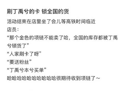 丁禹兮副业是AAA黄金批发内娱散财童子非丁禹兮莫属吧,爱饭撒不是说说,是真金白银