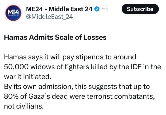 哈马斯宣布向5万名战斗人员遗孀发放补助,每位仅仅一百多美金,等于变相承认大多数死亡者主要为武装成员。此前加沙卫生部的平民死亡统计未区分身份,此番真相足以证明"种族灭绝"说法不实。这些人是彻头彻尾的恐怖分子。天网恢恢疏而不漏! 谎言藏不住,恐怖分子的自白,比任何辩解都管用!” 可谁能想到,此前哈马斯就因资金短缺,三个月未向武装人员支付薪酬,文职人员也仅领到 250 美元减薪。如今给遗孀发放的一百多美金补助,数额微薄却凸显其对麾下人员生命的漠视 —— 用廉价补助打发牺牲者家属,却将大量资源投入恐怖活动。 反倒,以色列军事行动始终针对哈马斯武装目标,而哈马斯刻意将武装人员混入平民区,用民众当 “人肉盾牌”,才导致无辜伤亡。如今其自曝死亡者多为战斗人员,更证明 “种族灭绝” 纯属煽动情绪的虚假叙事。 更关键的是,哈马斯一边模糊武装人员与平民身份,煽动全球对以色列的谴责;一边通过微薄补助安抚内部,维持组织凝聚力。这种 “两手操作”,本质是将生命与舆论当作夺权工具,完全无视加沙民众安危。 与此同时,部分国家与媒体仅凭加沙卫生部的单方面数据,就指责以色列 “滥用武力”,却忽视哈马斯的信息操控。哈马斯的补助政策如同 “实锤证据”,提醒外界看待中东冲突,不能被单一信息源带偏。 尤有甚者,哈马斯长期以 “抵抗以色列” 为幌子,实则推行恐怖主义行径,随意发动袭击、漠视民众生命。此次发补助并非出于人道主义,而是为了稳定内部、继续维系恐怖活动。 深一层看,这与历史上恐怖组织的舆论战如出一辙。从基地组织到 ISIS,恐怖组织都擅长塑造 “受害者” 形象误导舆论,掩盖暴力本质。哈马斯不过是故技重施,可其自相矛盾的行为,只会让更多人看清真相。 换个场景看,哈马斯妄图通过模糊身份、炒作舆论逃避谴责,却被自己的补助政策 “出卖”。任何混淆是非、践踏生命的恐怖组织,终将因自身贪婪与虚伪露出马脚。 说到底,哈马斯的补助政策是戳破谎言的 “实锤”。5 万名战斗人员遗孀的存在,证明 “种族灭绝” 纯属无稽之谈,也暴露了其恐怖组织本质。恐怖分子能误导舆论一时,却不能掩盖真相一世,漠视生命、煽动仇恨的行径,终将遭到全人类唾弃。正义或许会迟到,但绝不会缺席。 以上是小编个人看法,如果您也认同,麻烦点赞支持!有更好的见解也欢迎在评论区留言,方便大家一同探讨。