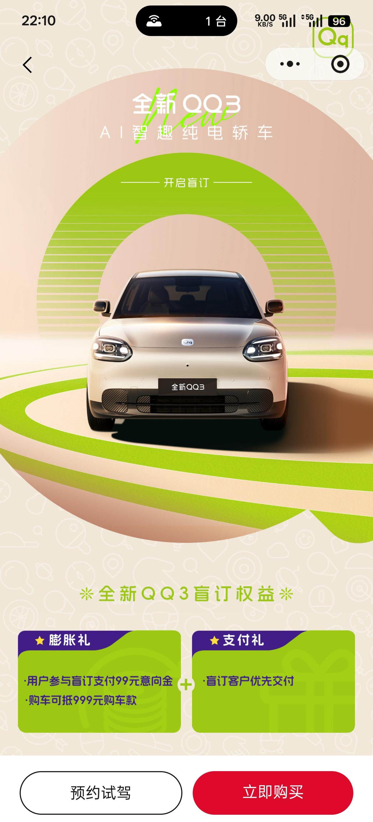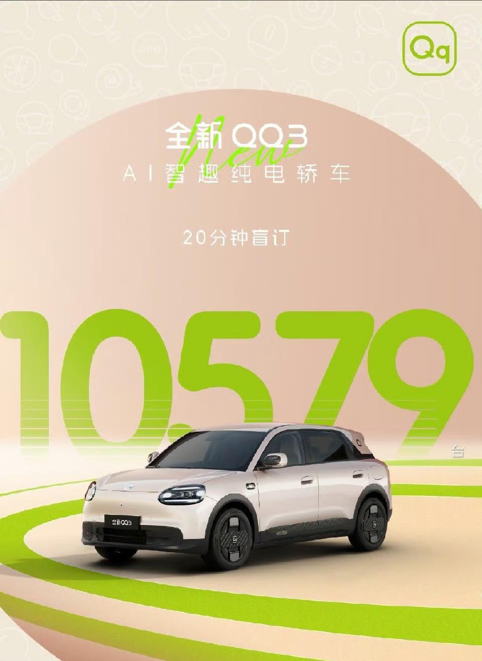 奇瑞全新QQ3开启盲订仅20分钟就卖出10579台,3小时后飙升至27319台!当时说的 20 分钟 1 万台,觉着还不错,但没想到 3 小时飙升了 27000 但毕竟 99 元就可以,凑个热闹不如多凑一下吧。但也有很多人是对奇瑞 QQ 多多少少是很有情怀的,这样一辆纯电家用小车加上奇瑞的品控,势必会引起 A0 级小车新的波澜!