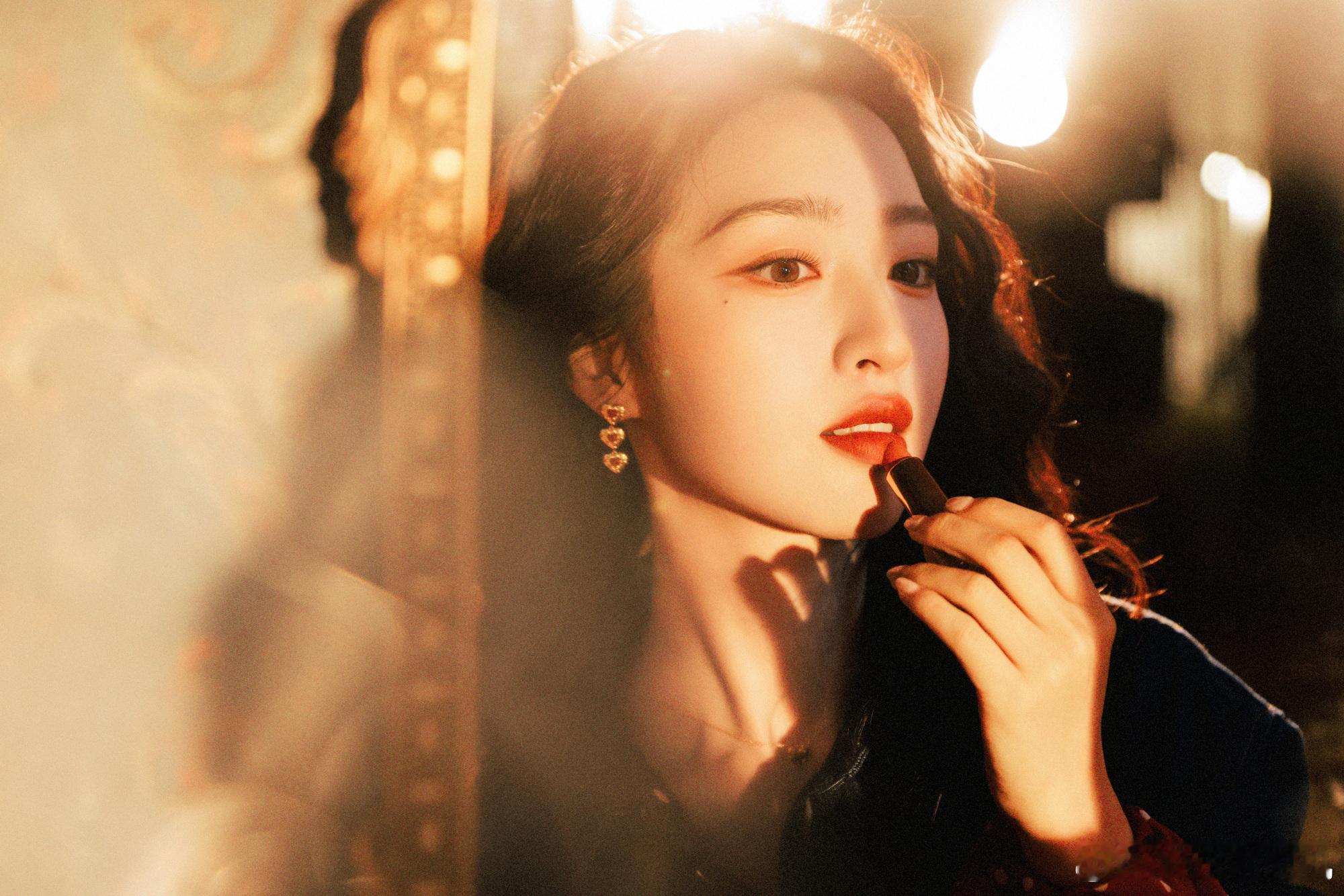 邓恩熙红唇大波浪卷发的弧度恰到好处,蓬松又自然。配上复古红唇,既有港风美人的明