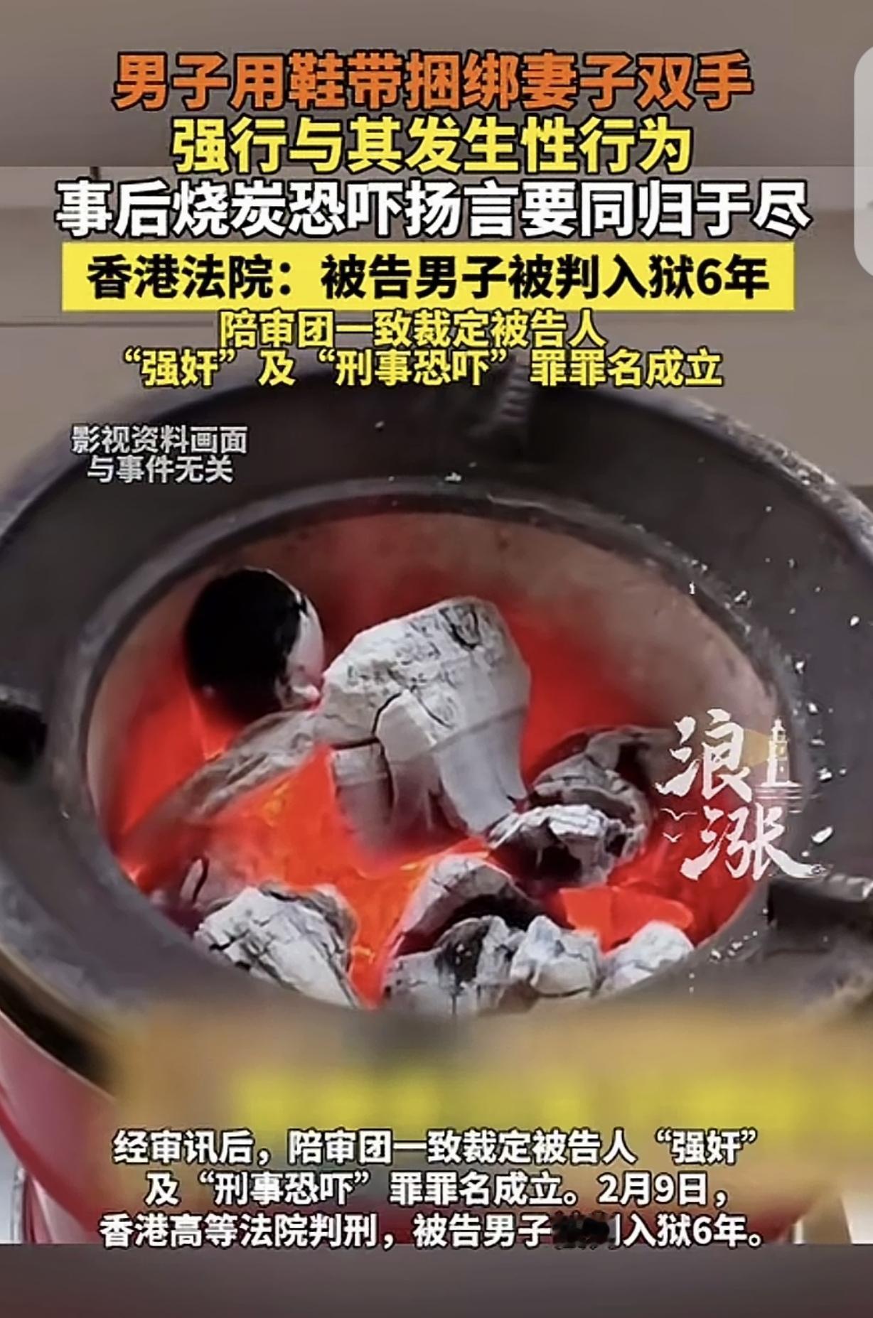 “太离谱了!”一56岁男子,发现妻子去见前男友,他怀疑妻子不忠,2人分居后,男子在午夜时分,闯进妻子房间,要求她尽妻子的义务,被拒后,男子恼羞成怒,用鞋带把妻子双手绑了起来,强行跟她发生关系,还烧炭吓唬妻子,扬言要和她同归于尽,除非妻子原谅他。妻子用了缓兵之计,好说歹说让男子给她松了绑,然后立马报的警,男子被判有期徒刑6年。 一男子1970年出生,已经56岁了,他1993年跟妻子结婚,相濡以沫33年,可没想到,岁月静好,却突然被妻子的前男友打破了平静。 男子无意间发现,妻子背着自己去见了前男友,这让男子很恼火。 虽然妻子一口咬定,她和前男友见面就是普通朋友叙旧,没干别的,但妻子越这么说,男子越胡思乱想。 在他看来,一对有情感纠缠的男女见面,能有什么好事?暗度陈仓了呗。 幸亏他发现了,否则自己头顶一片绿油油,他还蒙在鼓里呢,他认为妻子对自己不忠,夫妻俩心生嫌隙,吵得不可开交,最后竟分居了。 这可把男子气坏了,他更加相信妻子移情别恋,又和前男友旧情复燃了,先是分居,然后就会跟自己离婚。 男子越想越生气,怒火很快吞噬了他的理智,他决定不会让妻子好过也不会成全她和前男友。 2022年10月17日午夜时分,男子躺在床上辗转难眠,他索性爬起来,闯进妻子房间,让她尽妻子的义务。 本来对丈夫胡思乱想,往自己身上泼脏水,妻子就余怒未消,他还想用强?妻子感觉很恶心,斩钉截铁拒绝了。 男子一看,更证实了他的怀疑,她跟前男友投怀送抱,对自己冷若冰箱,他岂能咽下这口气? 男子一怒之下,用鞋带绑住妻子双手。妻子一个弱女子,当然不是男子的对手,很快,妻子双手被绑动弹不得。 然后,男子强行侵犯了妻子,他可能也知道这样属于违背妇女意志,如果妻子不依不饶,他没好果子吃,他怕妻子报警,竟然吓唬妻子,要烧炭同归于尽。 看男子点燃了一张纸准备烧炭,妻子吓坏了,她还没活够呢,男子目的达到了,他又好言相劝,让妻子原谅他,然后他就把火熄灭。 妻子不吃眼前亏,决定用缓兵之计,先稳定男子,让他把自己松绑,然后再报警把他绳之以法。 男子看妻子承诺不追究了,给妻子松了绑,妻子反手就报了警。 有人说,男人活到这个份上也够丢脸的了,男人尊然不可践踏、大不了休了她、何必做后损害的是自己? 其实没必要,直接起诉离婚就好了,2年没有夫妻共同生活,法院是支持的。 男的可以去申请离婚,理由是女人不配合夫妻生活。但是男的不能硬要发生关系。我国港澳台打老婆打孩子打女朋友都是犯罪,不是家庭纠纷。 这个男人真的是蠢到家了,又怂又狠,把一手好牌打得稀烂。老婆见前男友,哪怕心里膈应,大不了敞开了吵,吵完要么翻篇要么离婚,哪有什么过不去的坎?可他偏要选最极端的路,怀疑来怀疑去,最后把自己送进监狱。 说白了,他不是在乎老婆,是在乎那点可怜的面子,觉得老婆见前男友就是让自己没脸,完全被情绪冲昏了头。 动手绑人、强行发生关系,还拿烧炭同归于尽吓唬人,这哪是过日子的人干的事?他以为这样能留住老婆,结果反而把最后一点情分烧得精光。 而且他根本没搞懂法律,都2026年了,哪还有什么“妻子必须尽义务”的歪理?哪怕是合法夫妻,只要女方不愿意,强行发生关系就是强奸。 这男人不仅蠢,还法盲,好好的家不要,非要用暴力解决问题,最后被判6年,完全是自作自受。 最终,男子被判6年有期徒刑,真是追悔莫及。 对此,你怎么看?
