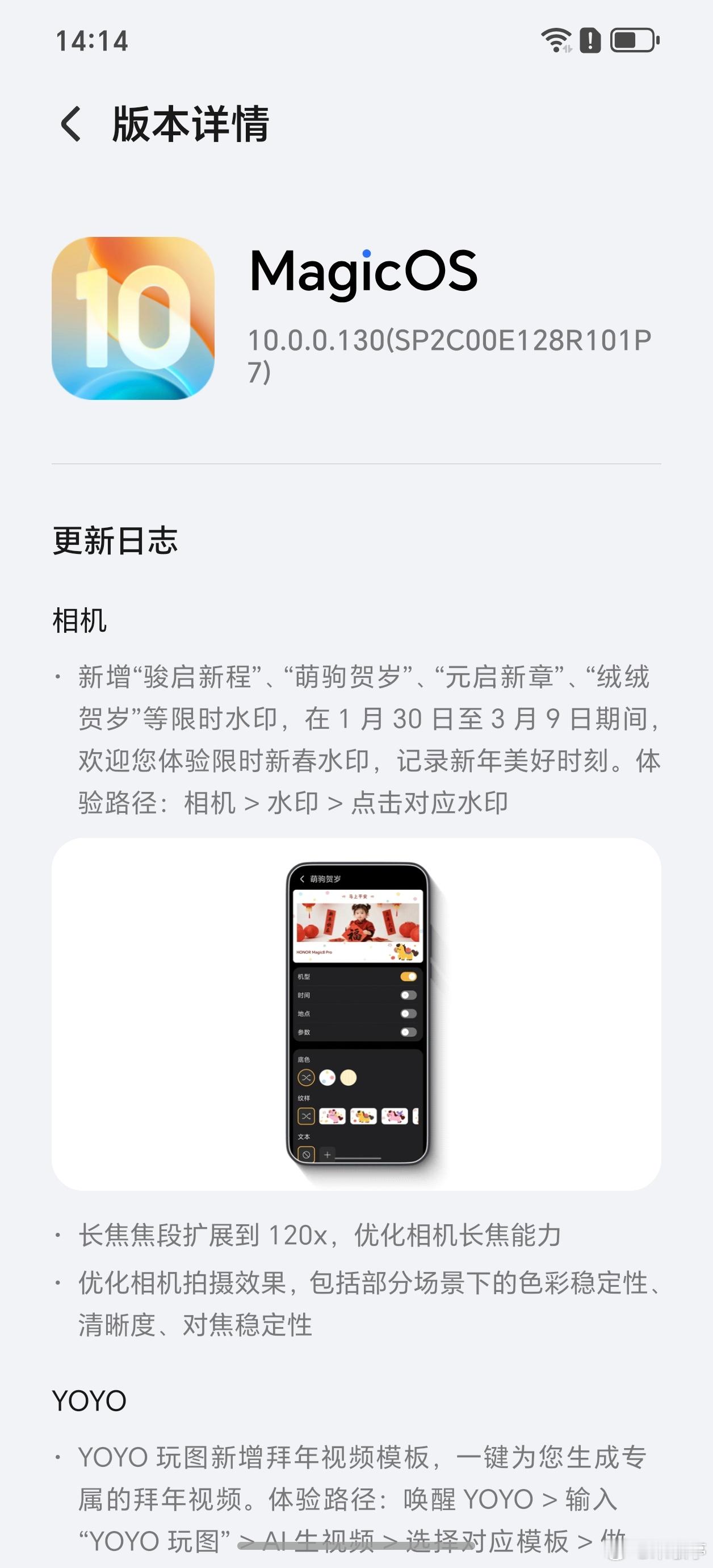 荣耀Magic8系列升级130版本,除了长焦增强外,YOYO玩图增加了许多春节元素,直接图片生成各种春节氛围感视频、尤其这专属拜年视频可玩性非常高啊。