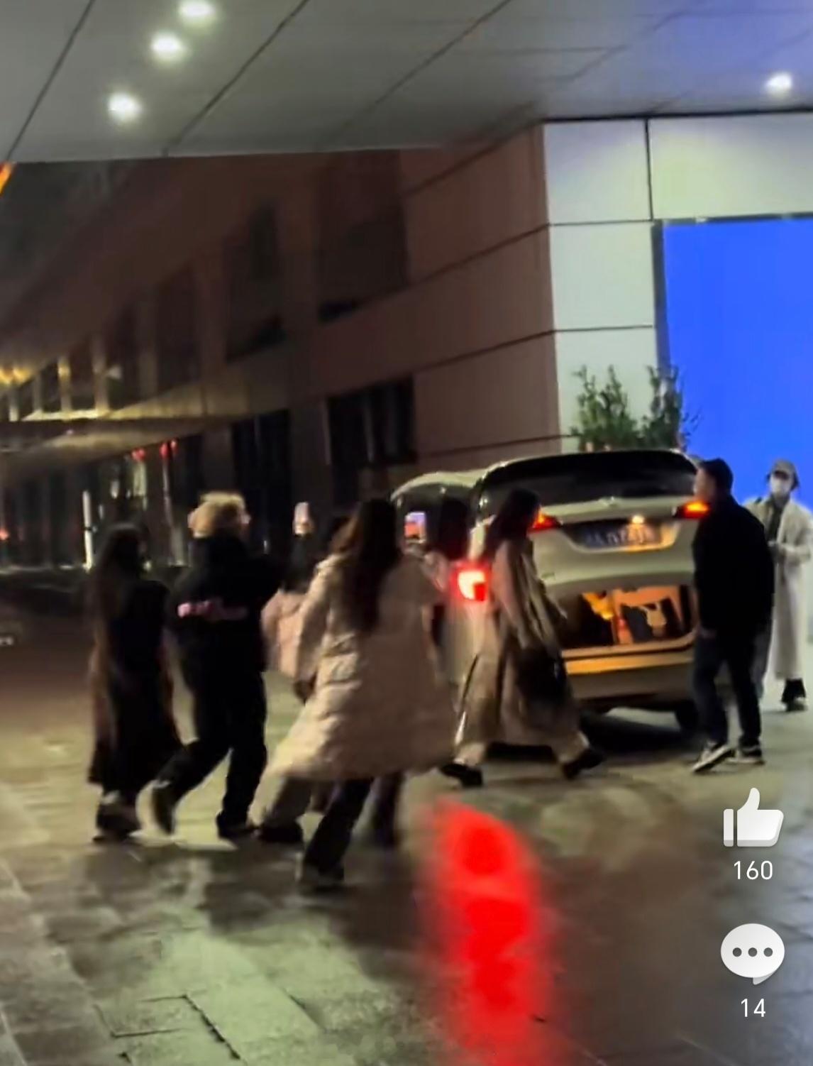 张天爱跟素人合影,胯真的好宽,大宅院似的