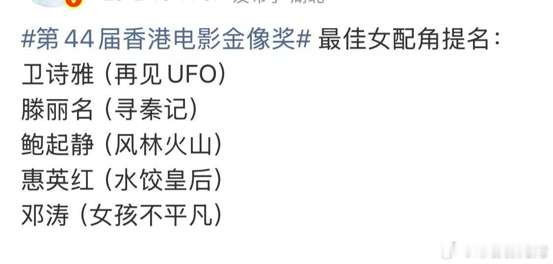 金像奖提名,昨天女配不是还有提前开🍾的吗?上桌的只有你怡啊