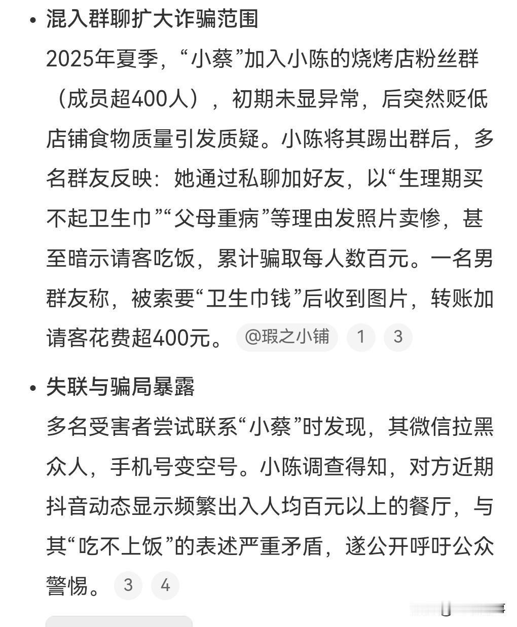 不要轻易相信陌生人的卖惨,2月10日热点,烧烤店老板称女网友进群后卖惨要钱。 这女网友就是个骗子,利用别人的同情心骗了不少的钱,应该受到法律的制裁。 这烧烤店老板也是个好人,给了对方一点钱,后来就加了他的店群。 然后就私信那些群友要钱帮她。 遇到这种人不要搭理就可以了。 要不然只有上当的份。
