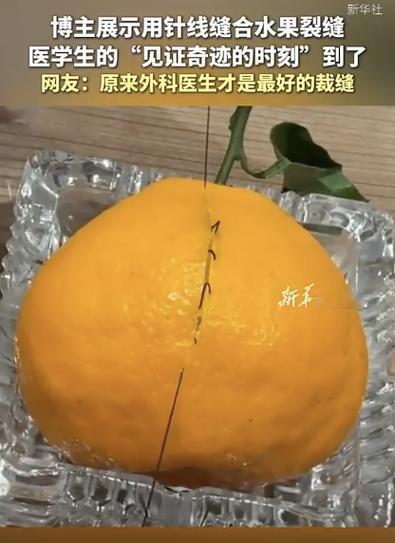 一位博主用针线缝合裂开的水果视频走红,苹果、橙子、猕猴桃等破损果实被细细缝补,手法精致又治愈。看似无用却充满仪式感,网友戏称“水果外科医生”“万物皆可缝”。视频既展现手工巧思,也暗含珍惜食物、修补遗憾的温柔寓意,治愈感拉满。美容式缝合 猕猴桃裂口