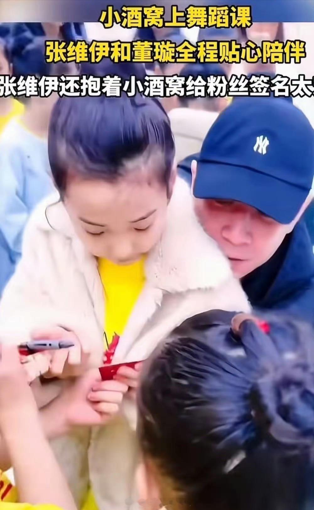 董璇张维伊陪小酒窝上课董璇张维伊陪女儿小酒窝上舞蹈课,结束后张维伊还扶着小酒窝给一起跳舞的小伙伴们签名