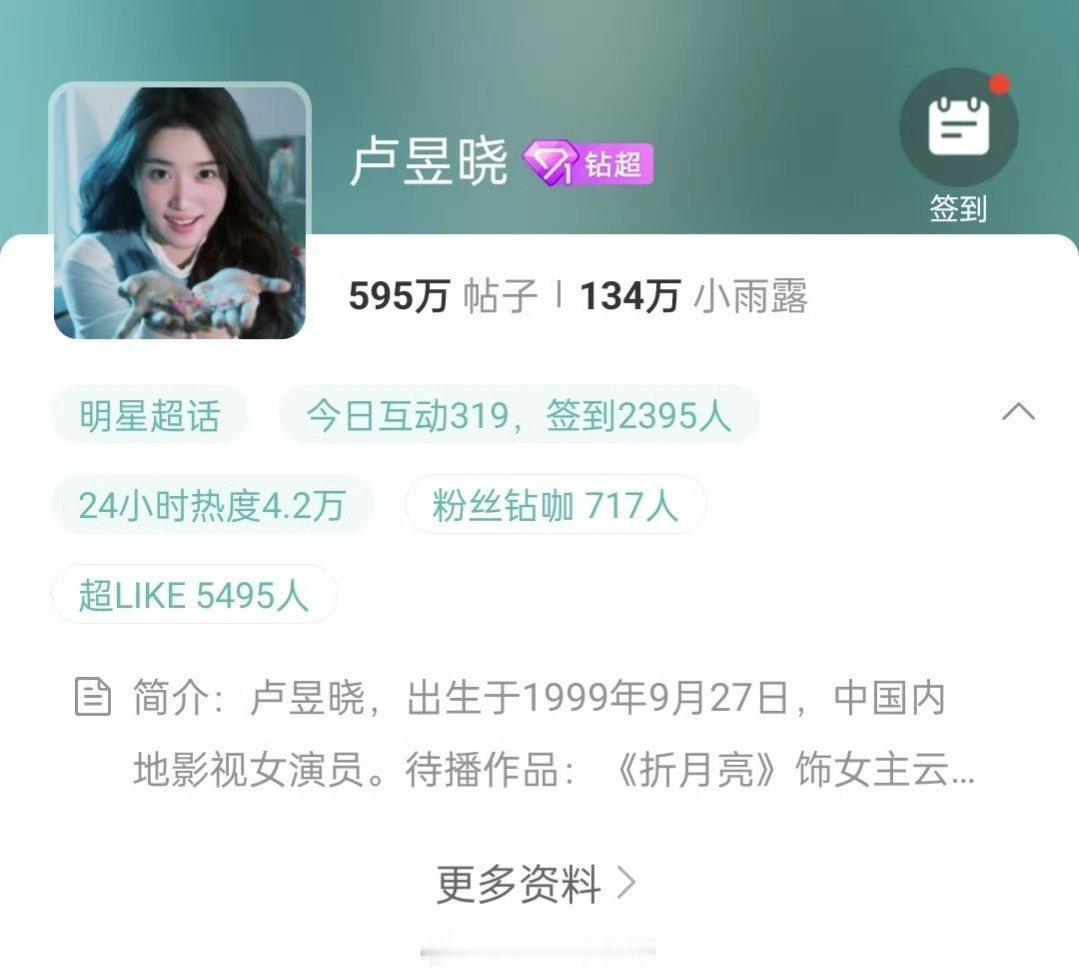 卢昱晓2025年全网涨粉800万!超like同期花位列第四,并且在无任何活动下超话连续15周钻超,🈶效播剧,有效吸粉