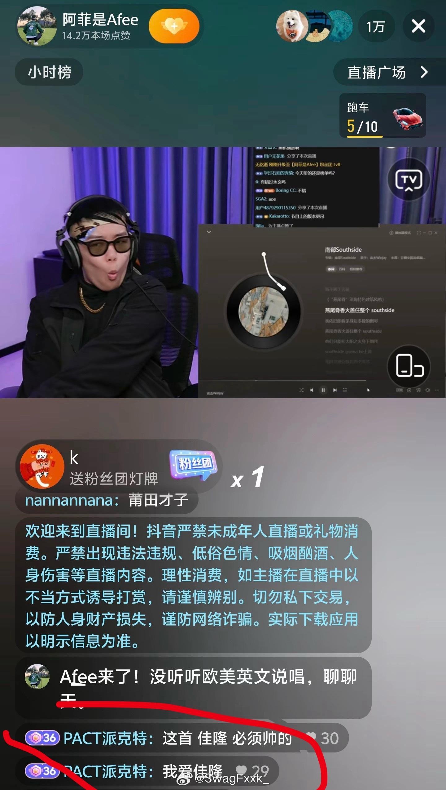 派克特在reaction博主阿菲是Afee直播间re《满了》的时候,留言表白李佳