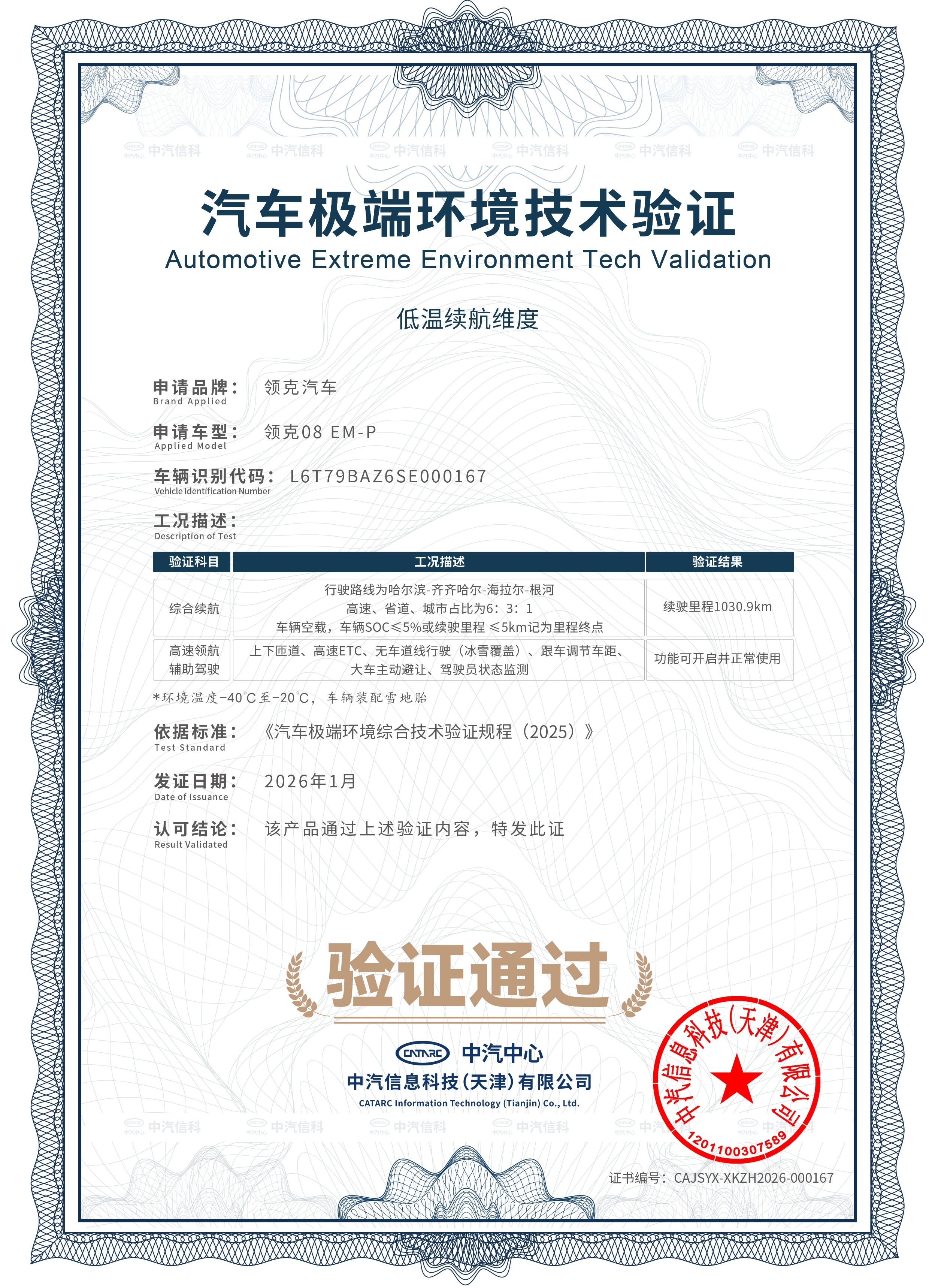 #春节返乡要稳不要快#春运赶路主打一个靠谱!近日,全新领克08EM-P得到了中汽信科在极寒环境下的技术认证,-40℃一箱油一次电从哈尔滨直达根河,续航1030.9km,低温也很扎实。而且在经过81.18km/h雪地弯道爆胎测试,也能稳稳控住不慌乱。更暖的是,它一路陪着安秋金远赴阿勒泰,看冬捕、吃家宴,在零下几十度里提前帮你热好车、冰箱温着热饮,简直是把“移动暖厅”搬进冰天雪地。#今年春节还回家吃饭吗#开领克08,暖乎乎、稳当当,平平安安回家过年。