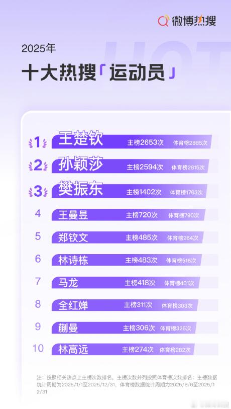 十大热搜运动员:王楚钦、孙颖莎、樊振东、王曼昱、郑钦文……