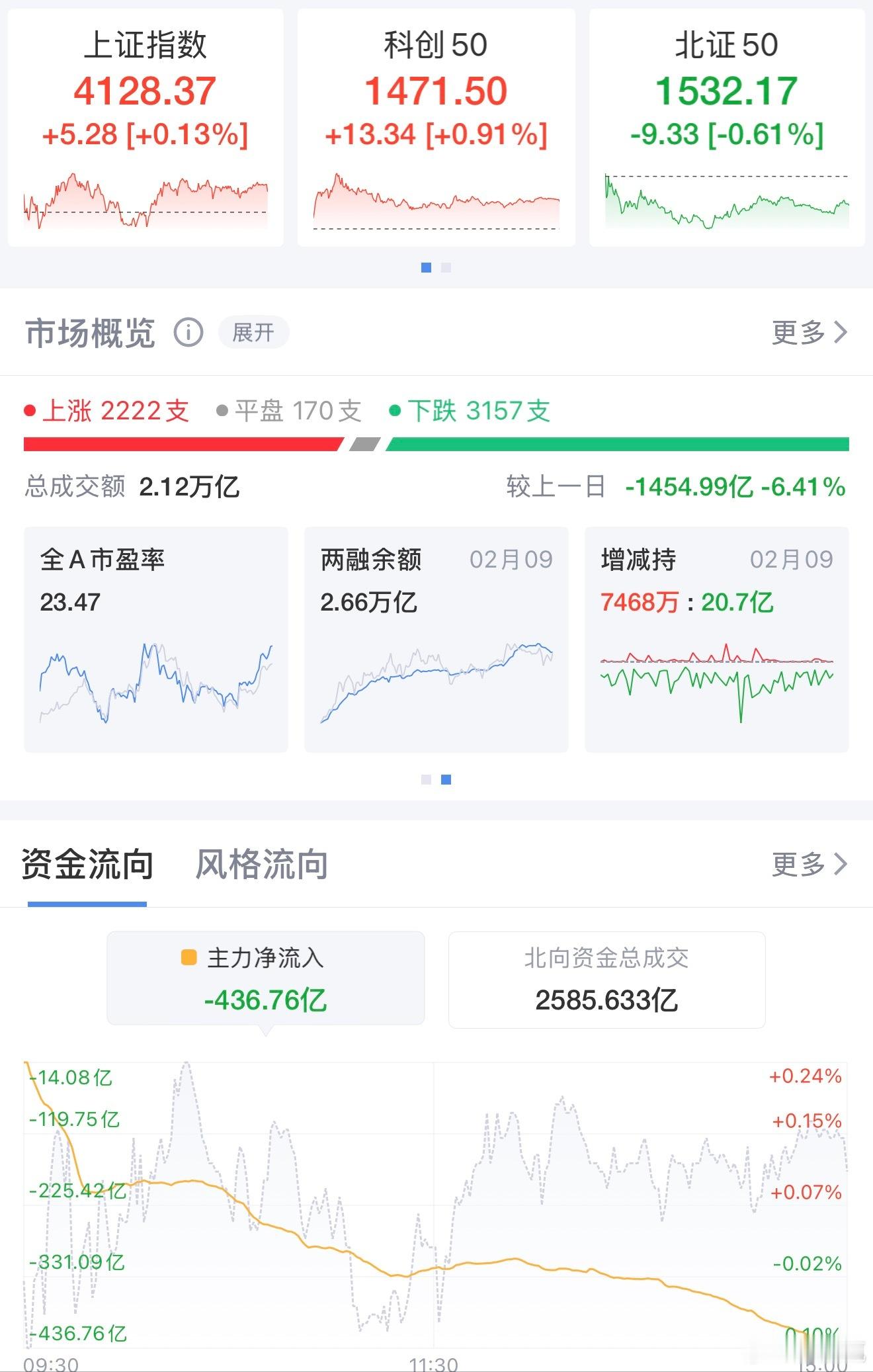 2月10日,市场全天窄幅震荡,三大股指涨跌互现,科创50涨近1%。总体看,两市个股跌多涨少,下跌个股超3100只。
