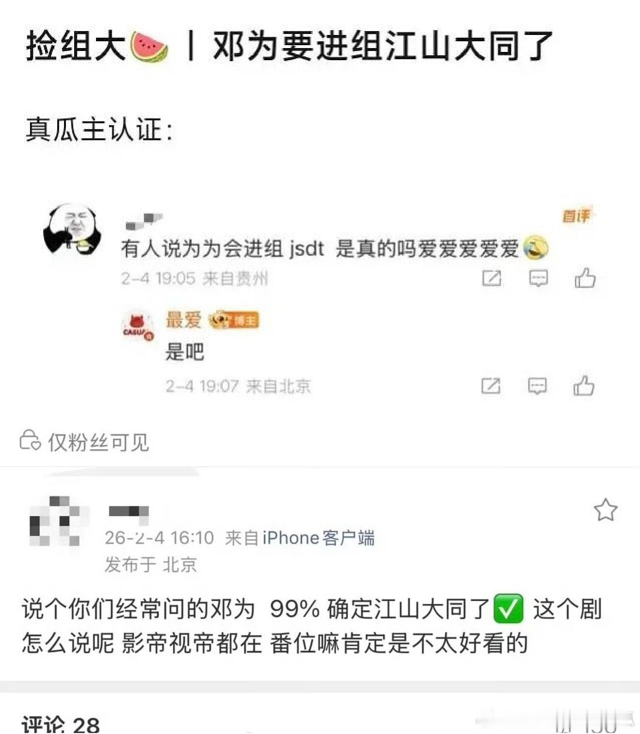 已经有靠谱业内说,邓为确定出演历史剧《江山大同》,但番位大概率不太好看。这部有杨幂、陈建斌在,番位不占优势也能理解。在如今的影视寒冬,坚定选择一番大男主和在阵容豪华的大制作中做镶边,你们觉得哪个才是正确的选择?