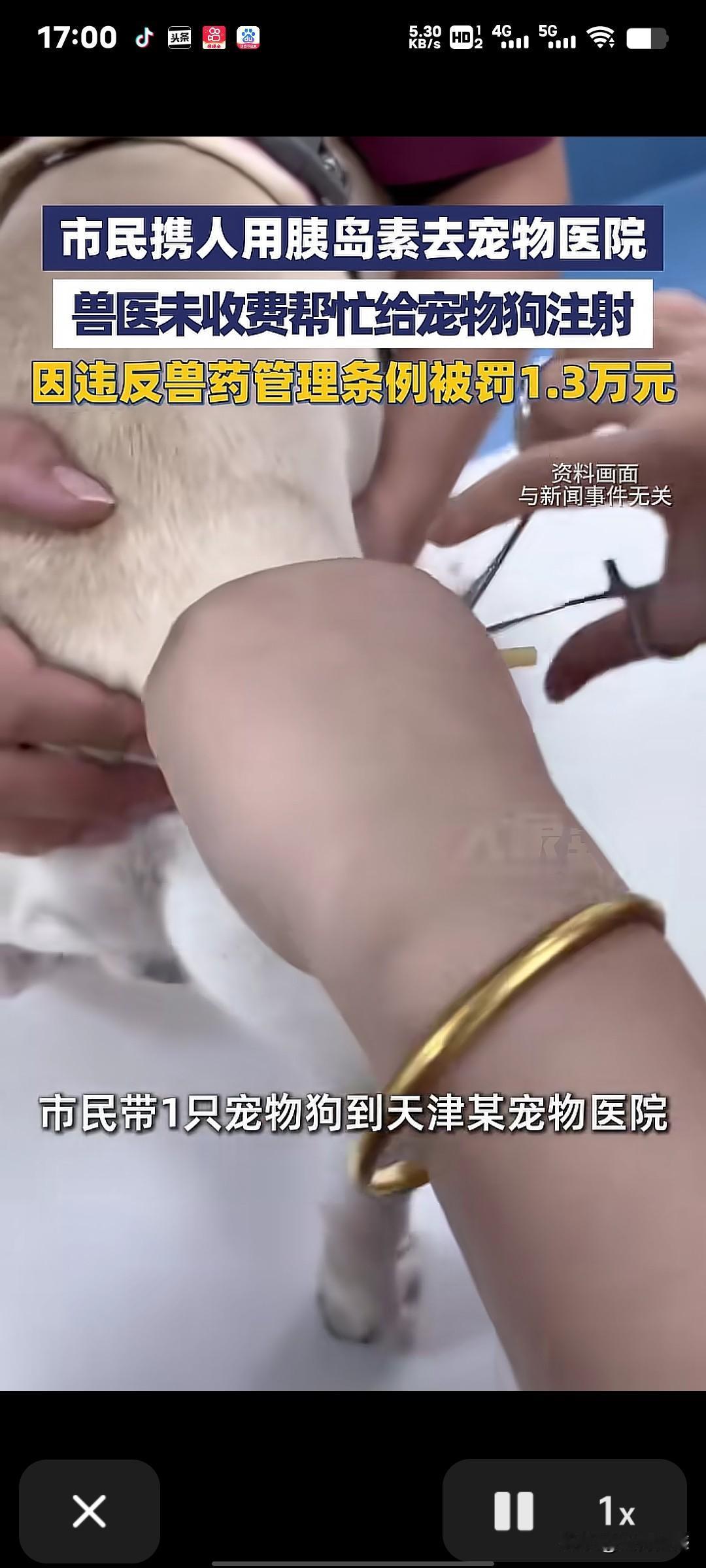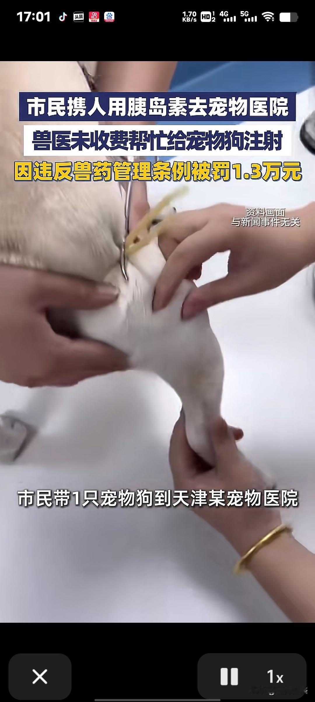 今天才知道,宠物医院给宠物用人用药是不行的,哪怕是宠物主人自己带药,宠物医院帮忙给打针了,也是不行的。天津一个市民带着自己的宠物狗,拿着人用的胰岛素到宠物医院去给狗打针,宠物医院帮忙给狗打了,也没有收费,但是被别人举报了,于是这家宠物医院就被罚款1.3万元,因为违反了兽药管理条例,看来不管干什么,不懂法是不行的!