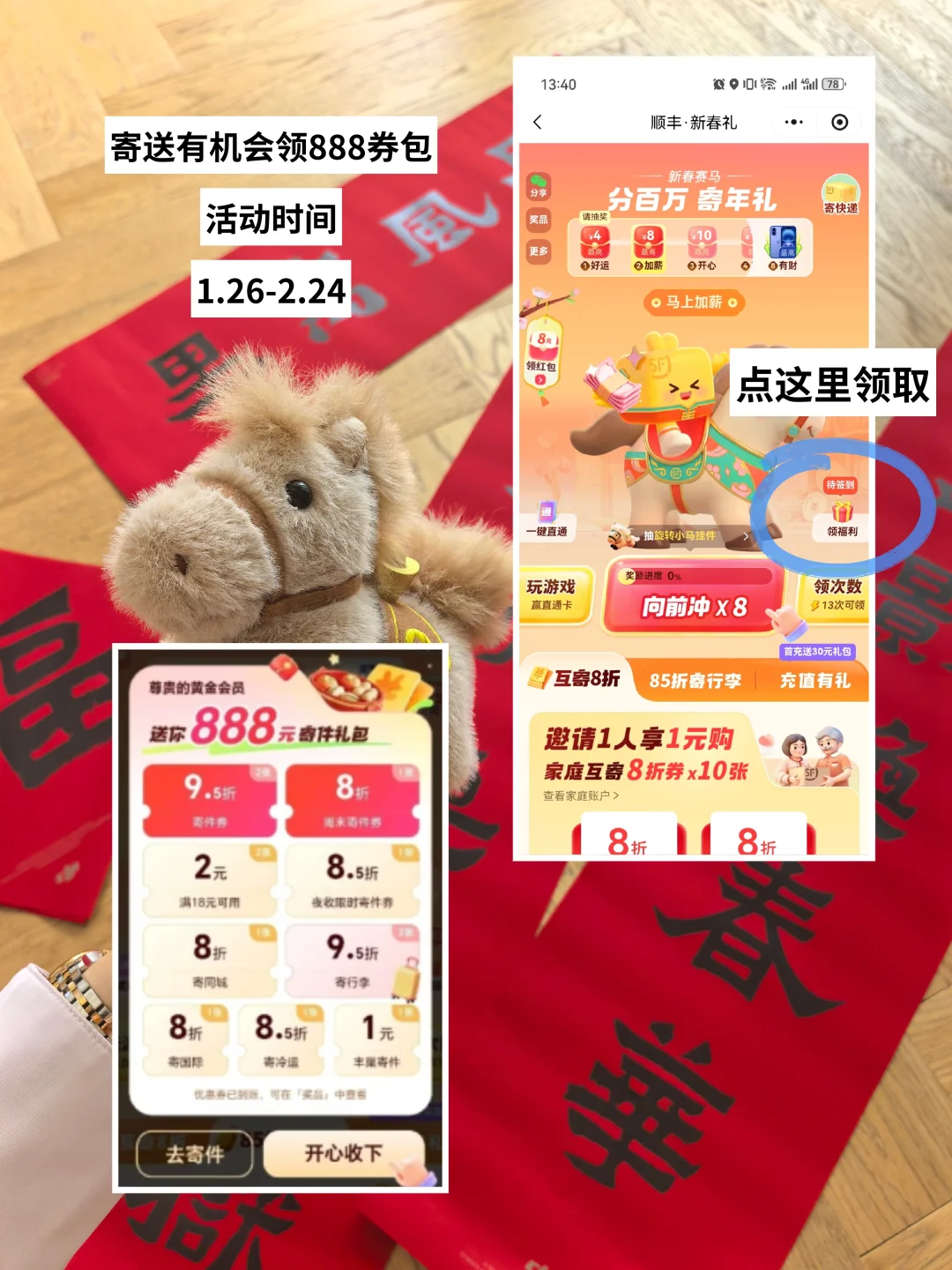 今年春节寄件还能领 888 元春节券包,寄心意还能省开支,分享给大家一起用~