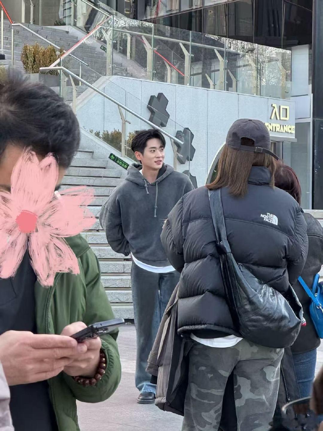 张天爱跟素人合影,胯真的好宽,大宅院似的