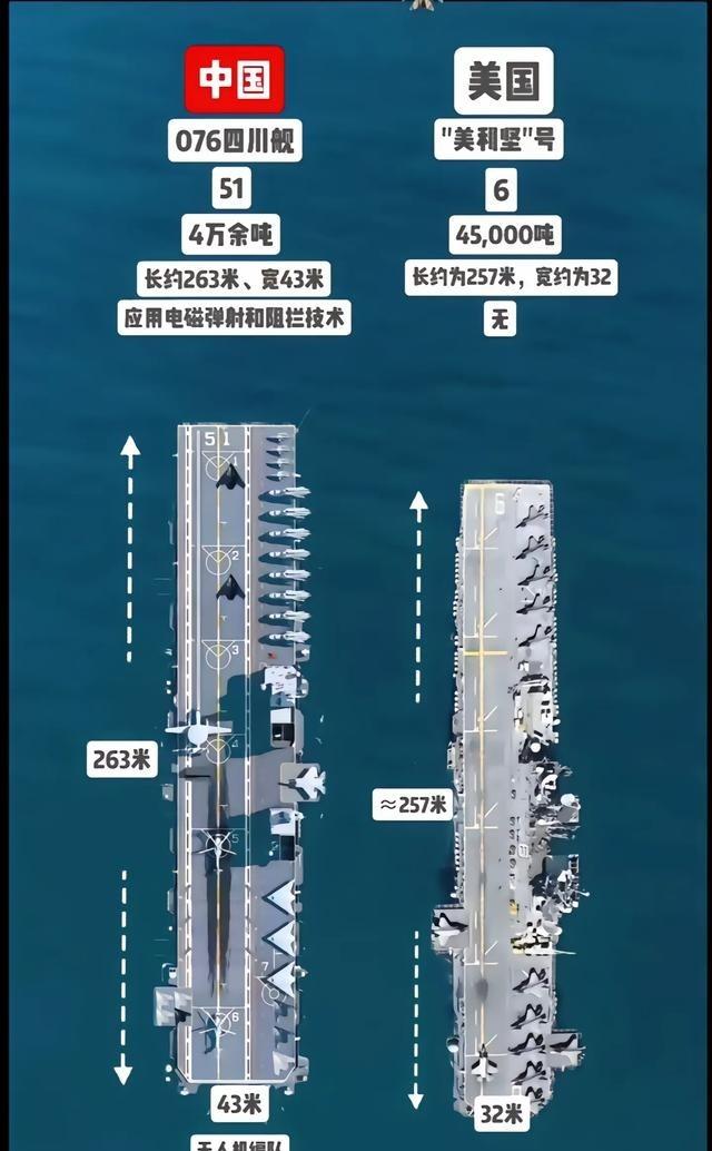 美媒称076四川舰的作战能力高于法国戴高乐航母,个人觉得这是美媒基于未来海战理念给076的客观评价。若076这种“万金油”战舰搭配福建舰一起使用,海军的优势将进步一放大。 076型两栖攻击舰首舰四川舰排水量超过4万吨,长度约260米左右,甲板宽度达到40多米,配备电磁弹射系统和阻拦装置,能起降固定翼无人机、预警机、战斗机以及直升机,还保留了坞舱用于登陆艇和两栖车辆投放。法国戴高乐号核动力航母排水量约4.2万吨,长度261米,主要靠蒸汽弹射起降阵风战斗机和E-2预警机。美媒报道中提到,四川舰尺寸已接近或在某些方面超过戴高乐号,电磁弹射技术让它发射效率更高、适应载荷更广,这点确实戳中了未来海战对无人化和多平台联动的核心需求。戴高乐号作为单一航母,得自己扛起制空、反潜、预警全套任务,资源分配容易拉扯,而四川舰定位更灵活,它不追求全能,而是专注特定领域补充短板。 单独拿四川舰出来,它已经是全球最大级别的两栖攻击舰之一,比大多数国家的常规航母都大,电磁弹射让它能放飞重型无人机集群,这在传统两栖舰里是独一份。成本和维护上,它比重型核航母低不少,适合执行护航、岛礁巡逻或低强度投送任务。美媒把作战能力排在戴高乐号之上,主要看重这种“体系化”思路:未来海战不再靠单舰硬拼,而是靠编队分工协作,无人机蜂群、预警覆盖、精确打击结合在一起,整体效能翻倍。戴高乐号核动力续航强,但弹射系统老旧,起飞间隔长,机型也有限制,而四川舰电磁弹射更稳定,未来升级空间大。 如果四川舰和福建舰搭配编队,效果就更明显。福建舰作为弹射型航母,主打重型舰载机如歼-15T和歼-35,机库和弹药库全用来保障这些主力,调度简单,后勤压力小。四川舰则专攻预警、反潜和无人机,搭载空警-600提供远距离探测,固定翼反潜机搜潜,各型无人机负责诱敌、电子战或饱和攻击。这样分工后,福建舰不用分心协调多种机型,专注空中打击;四川舰腾出空间最大化无人平台输出。整个编队空中态势感知范围扩大,攻击链路缩短,后勤分散,生存力也强。美媒警惕的点就在这里:这种组合不光是数量堆叠,而是质的跃升,接近“分布式杀伤”概念,在台海或南海这类近中海域,优势会被进一步放大。 四川舰从2024年底下水,到2025年11月开始海试,电磁弹射测试已进行,动力和电力系统验证稳定。后续还会继续舰载机兼容试验,如果无人机作战模式跑通,海军很可能形成新标准,影响全球两栖舰设计方向。更多076型服役后,远海投送和多域作战能力会持续爬坡。总的来说,美媒这个评价不是空穴来风,而是看到中国海军从平台向体系转型的趋势,四川舰正好卡在航母和两栖舰中间,填补了无人化作战的空白。搭配福建舰用,确实能让整体战力跳一级台阶,这点在当前海军现代化进程里特别接地气。