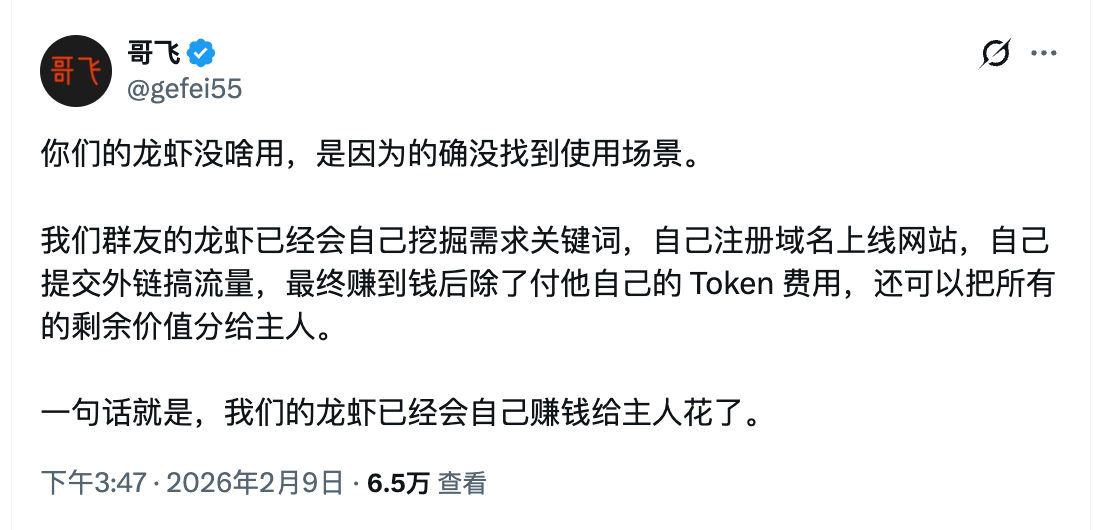 一类是娱乐场景,什么 Moltbook、约会类(Agent 之间)、上学类,包括今天火的 AI 女友 Clawra,这些应用主要是 cosplay,让 AI 扮演人类,人类的需求就是图一乐。