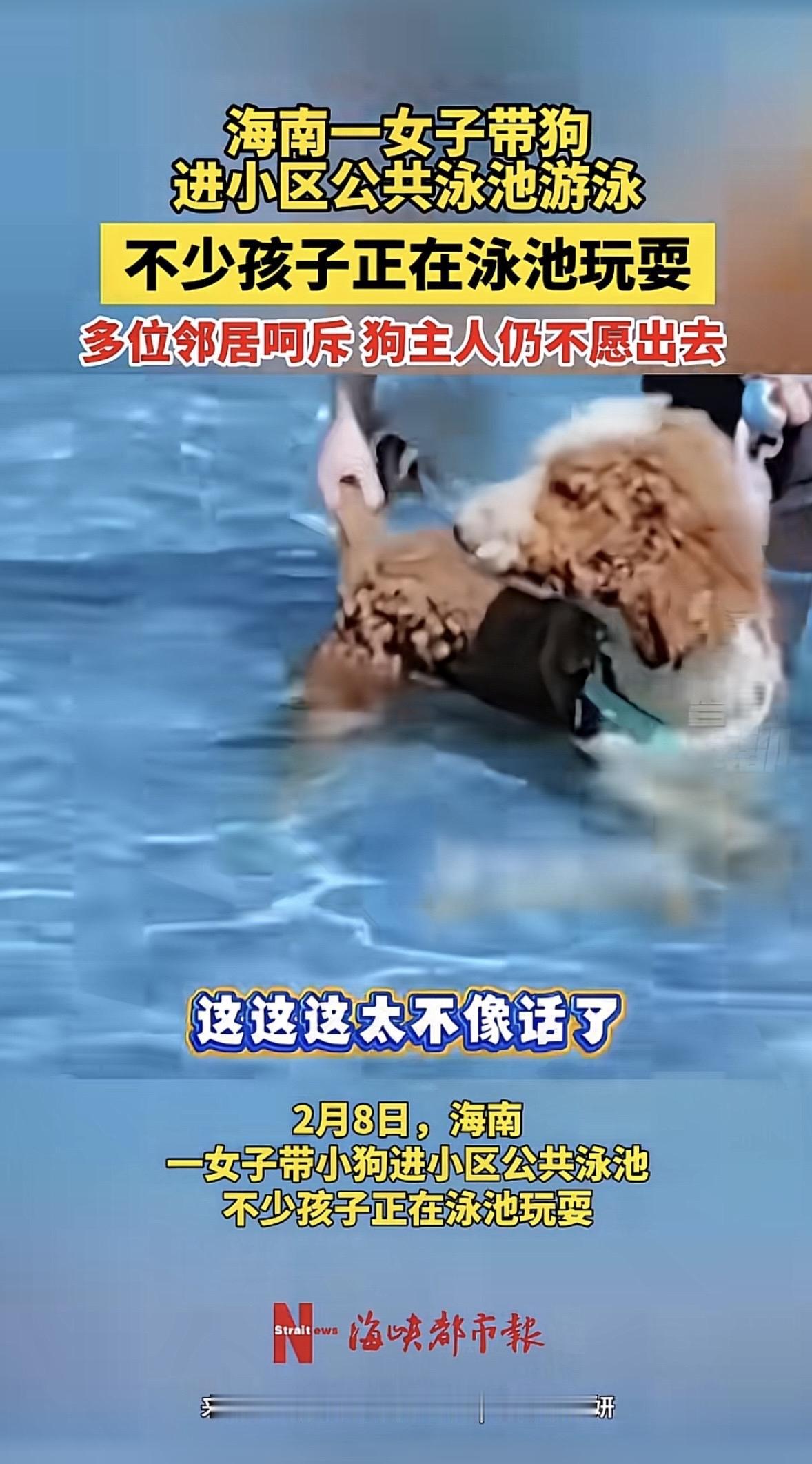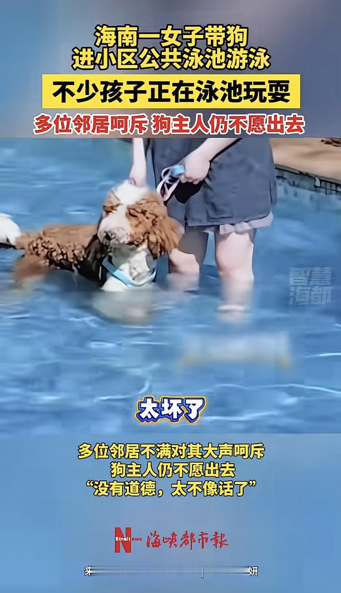 “狗不懂事,人也不懂吗?”海南,女子带着自家宠物狗,来到小区公共泳池里玩,邻居们