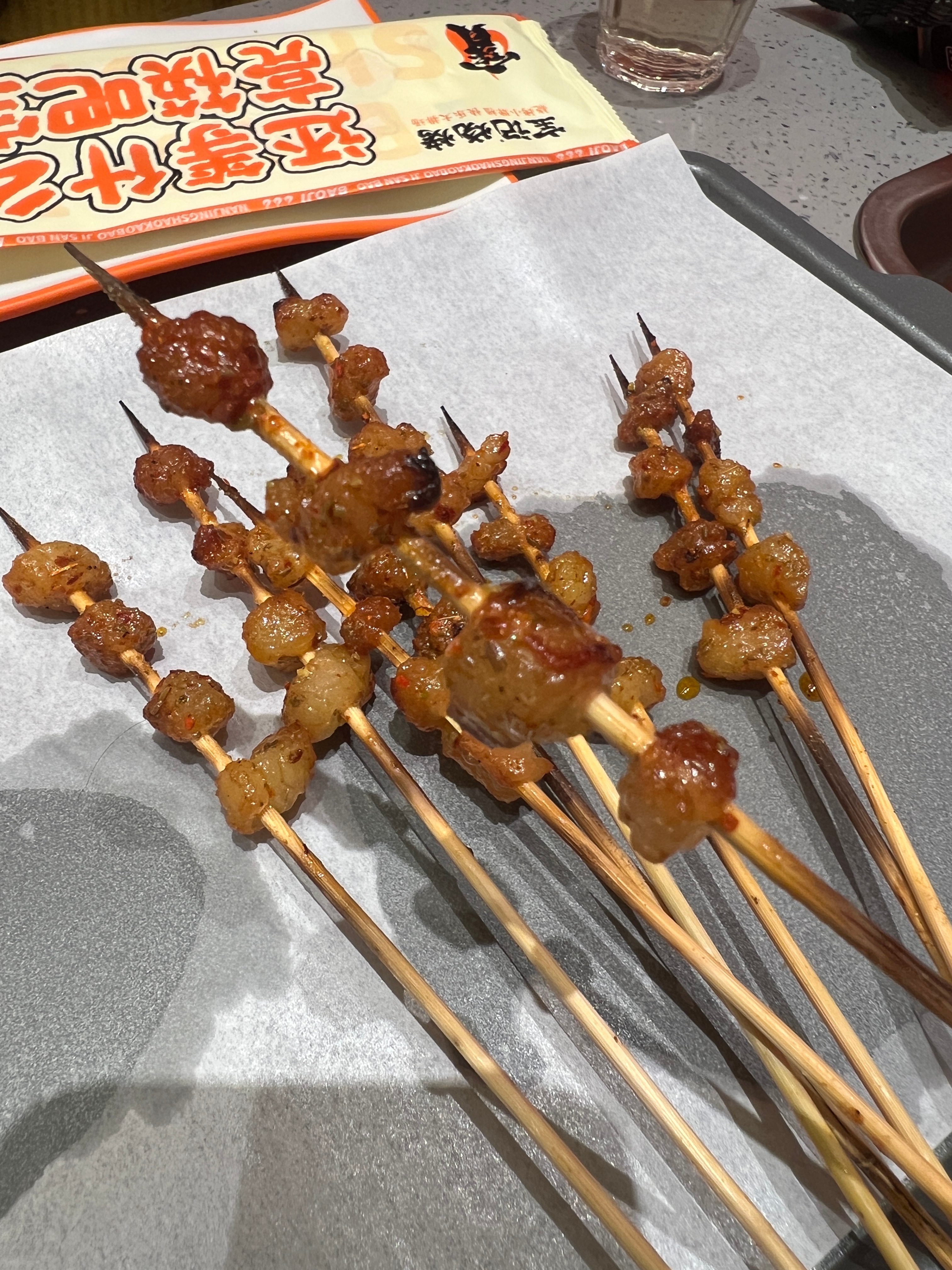 这家烧烤店,即使工作日,这个时间点去都要等一个小时。今天去竟然没排队,还有几个空位。果然是快过年了,很多人提前回老家了。