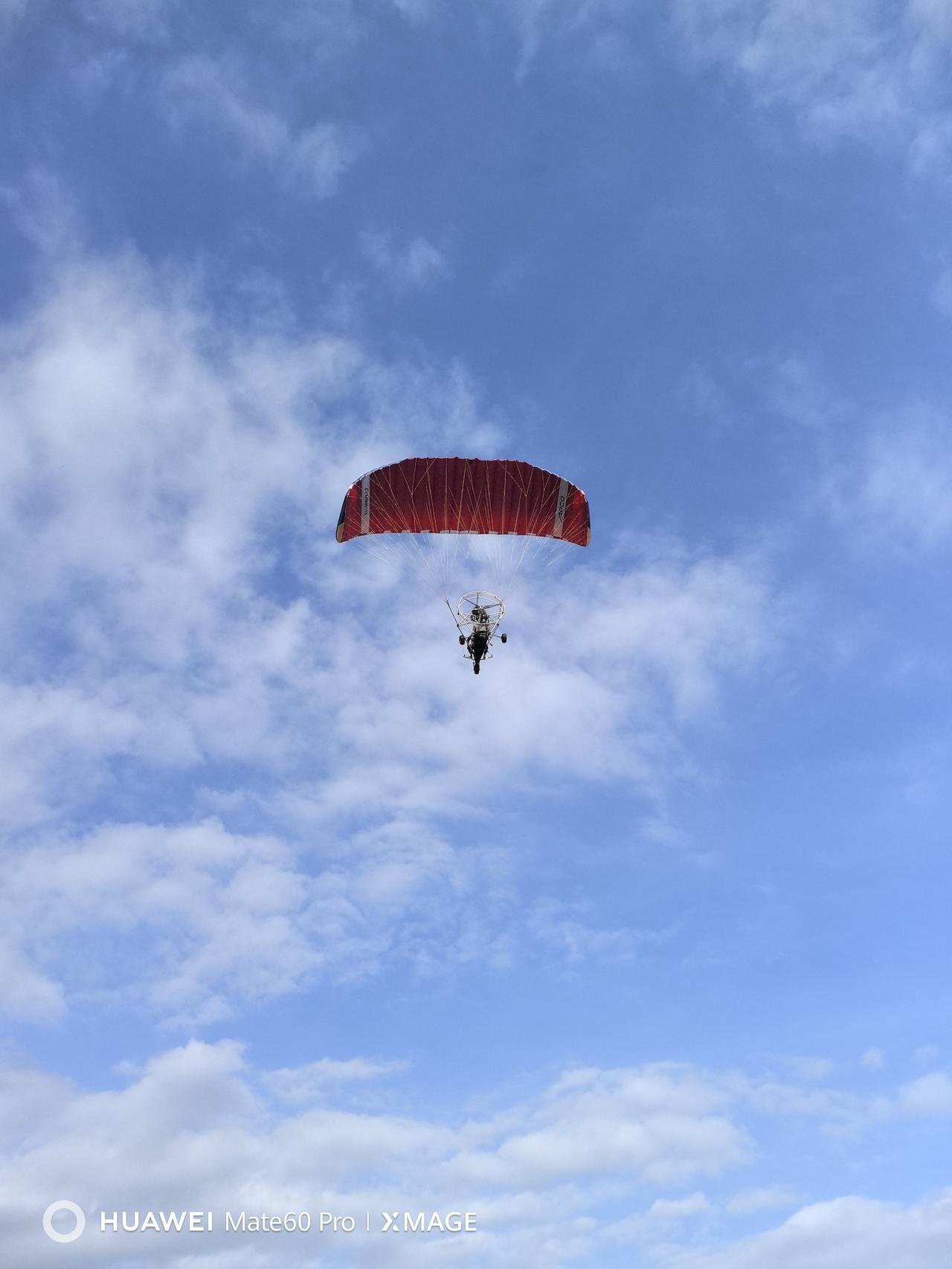 滑翔伞在蓝天白云间翱翔,自由自在的感觉!🌤️✈️