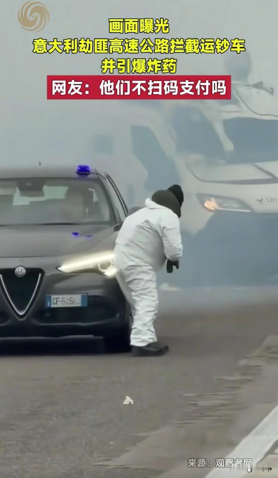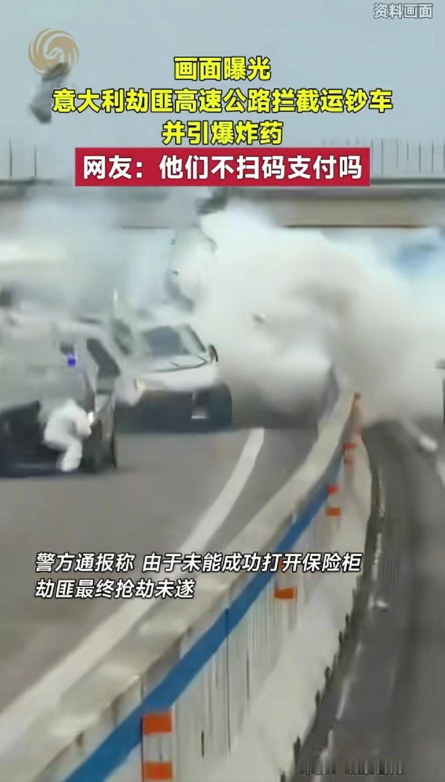 昨天意大利的一辆运钞车 被几个劫匪设伏堵在了高速公路上 他们大约有8到10个人,都是持有武器,他们企图用炸药炸开保险箱,但没有成功,此时意大利的宪兵已经赶到, 抓获了两名企图逃跑的嫌疑人,其他的都跑了,能选择在高速上抢运钞车,意大利人的思维逻辑真是强悍 意大利抢运钞车的事不新鲜,2024年11月份,也是大约10名劫匪,在意大利的东南部城市bari,在国道上堵住两辆运钞车,100万欧元被抢走,走的时候还把两辆车给点了 去年3月份在意大利的福贾,4名劫匪,开车在国道上,向一辆运钞车开枪射击,并撞击运钞车,迫使其停了下来,最后抢走大约40万欧元,并把运钞车炸毁,难能可贵的是没有人员伤亡 这只有在电影中才能常见的场景,在意大利轮番上演,真不知道他们那边的人是怎么想的。