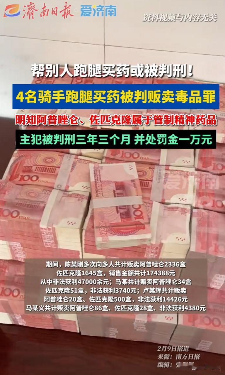 吉林延吉,一男子盯上了医院里两类特殊安眠药,在黑市有需求,便想出了一条“生财之道”,在跑腿群发布“生意”:用骑手们的身份证,去医院大量代开阿普唑仑、佐匹克隆等安眠类药物,由其高价转卖。有三名骑手觉得来钱容易,动了心,便反复操作,成了稳定的“供货员”。三名骑手以为这只是钻了医院管理的空子,赚点跑腿差价,没想到涉嫌贩 毒。结果,三名骑手均因贩卖毒品罪被判刑。 2021年,陈某刚得知,一些医院凭医生处方可以开到阿普唑仑、佐匹克隆等药物,他更知道,这些能帮助人镇静、催眠的药品,在某些“圈子”里有着特殊的“需求”,能卖出比医院售价高不少的价格。 巨大的利润差,让他动了心思。 然而,一个人能用自己的身份证开的药量是有限的,怎么能搞到更多药呢?陈某刚想到了自己熟悉的领域跑腿。 他混迹于本地的一些跑腿员、骑手微信群,这里聚集了大量需要灵活找活干的人。 他在群里发布消息:“长期收药,阿普唑仑、佐匹克隆,价格好谈,提供身份证挂号就行。” 消息简单直接,瞄准的就是那些想利用空闲时间赚点“外快”的骑手。 马某、卢某辉、马某义三人,正是在这样的微信群中看到了陈某刚的消息。 他们和陈某刚一样,日常穿梭于城市的大街小巷,对“跑腿”“代购”习以为常。 在他们看来,这无非是又一种“代买”服务:用自己或家人的身份证,去医院挂号、开药,然后把药交给陈某刚,从他那里拿到一笔“跑腿费”加“药钱”。 至于这些药最终流向哪里,选择了不去过问。 于是,陈某刚作为组织者和收购者,负责寻找销路并支付费用;马某等三人作为“下线”,负责提供身份证和跑腿劳力,从医院“代购”药品。 从2021年到2023年,在两年多的时间里,他们频繁出入延吉市的两家医院。 据统计,仅陈某刚一人,就向多人贩卖阿普唑仑2336盒、佐匹克隆1645盒,销售金额高达17万4千余元,他个人从中非法获利4万7千余元。 马某等三人也分别贩卖了几十到几百盒不等的药品,获取了数千元不等的“利润”。 法网恢恢,马某等人的违法行为终被发现,四人均被逮捕。 随后,检察院以 贩卖毒品罪对陈某刚、马某等人提起公诉。 法院会如何判决呢? 《刑法》第三百四十七条规定,……走私、贩卖、运输、制造鸦片不满二百克、海洛因或者甲基苯丙胺不满十克或者其他少量毒品的,处三年以下有期徒刑、拘役或者管制,并处罚金;情节严重的,处三年以上七年以下有期徒刑,并处罚金。 第三百五十七条明确规定,本法所称的毒品,是指鸦片、海洛因、甲基苯丙胺(冰毒)、吗啡、大麻、可卡因以及国家规定管制的其他能够使人形成瘾癖的麻醉药品和精神药品。 法院指出,在案证据显示,陈某刚在跑腿微信群中招揽人员时,已明确指向收购特定管制药品;马某等三人作为具有正常认知能力的成年人,在长期、多次使用本人身份证专门开设并转售远超个人正常用药量的管制药品过程中,对行为的违法性应有明确认知。 马某等人收取明显不合常理的高额报酬,更进一步印证了其牟取非法利益的主观目的。 陈某刚以明显高于正常配药成本的价格收购药品后,加价转售给下游人员;马某等三人明知陈某刚收购目的非法,仍为获取高额“代购费”而多次提供药品,其行为均是非法交易链条中有偿转让毒品的关键环节,已经属于贩卖。 陈某刚、马某等人其所贩卖的阿普唑仑、佐匹克隆,属于国家明令管制的精神药品,在法律属性上即为“毒品”。 法院认为,陈某刚、马某、卢某辉、马某义明知是国家管制的精神药品而进行贩卖,其行为均已触犯贩卖毒品罪。药品的来源是否正规,不影响其非法贩卖毒品行为的定性。 《刑法》第二十六条之规定,组织、领导犯罪集团进行犯罪活动的或者在共同犯罪中起主要作用的,是主犯。 第二十七条规定,在共同犯罪中起次要或者辅助作用的,是从犯。对于从犯,应当从轻、减轻处罚或者免除处罚。 法院进一步指出,陈某刚提出犯意,通过微信群发布信息主动招募人员,提供收购资金和销售渠道,组织、指挥整个贩毒活动的进行,控制毒品的来源与去向,并获取绝大部分非法利润,在共同犯罪中起组织、领导、主要作用,依法应当认定为主犯。 不过,马某等人,相较于陈某刚,三人的行为受陈某刚指使,在犯罪链条中处于被支配、辅助的地位,所获非法利益远低于陈某刚,所起作用相对次要,系从犯。 又本案涉及阿普唑仑、佐匹克隆两种管制精神药品,总计数量达数千盒,且全案销售金额高达17万余元,符合情节严重。 最终,法院判处陈某刚有期徒刑三年三个月;判处马某有期徒刑一年四个月;判处卢某辉有期徒刑一年九个月,缓刑二年;判处马某义有期徒刑一年,缓刑一年三个月。 上述人员均同时被判处罚金。 对此,您怎么看?
