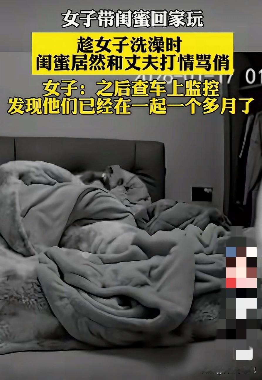 都什么年代了,居然还有人不懂这个道理:闺蜜和老公,本就是不能随便共存的两种人,界限感、距离感,半点都马虎不得。可偏偏就有人心大,把最亲近的闺蜜领到家里,最后换来的,只有扎心的背叛。 近日就有一位女子,把自己的好闺蜜叫到家里来玩,毫无防备之心,自己还放心地跑去洗澡,把老公和闺蜜单独留在家里。可她万万没想到,就是这短短一段时间,两人早已眉来眼去、打情骂俏,全程被家里监控拍得一清二楚。 更让她崩溃的是,事后她去查看行车记录仪,才彻底崩溃。原来这两个人,背地里在一起已经一个多月了,自己一直被蒙在鼓里,傻傻地把闺蜜当亲人,把老公当依靠,最后却成了唯一一个笑话。 很多人总觉得,爱情经得起考验,友情靠得住,却忘了人性最禁不起试探,关系最禁不起越界。不保持距离,不守住边界,再深的闺蜜情,再稳的夫妻关系,都可能在朝夕相处里变了味。 别再心大了,这个时代,最不能高估的就是感情,最不能忽视的就是边界。老公和闺蜜,本就不该有过多交集,更不该有单独相处的机会。别等到背叛发生了才后悔,有些伤害一旦出现,就再也回不去了。 守住界限,就是守住自己的婚姻,守住自己的真心,别让最信任的两个人,联手伤你最深。 (图片来自网络视频)