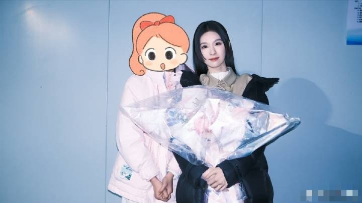 张天爱跟素人合影,胯真的好宽,大宅院似的